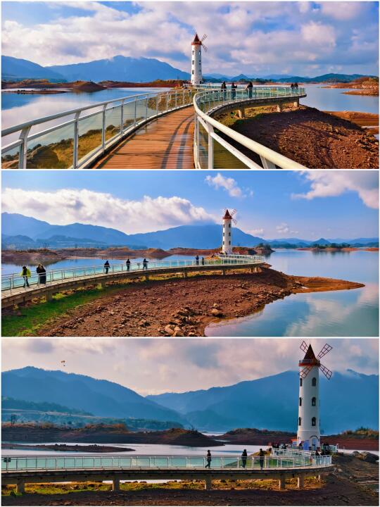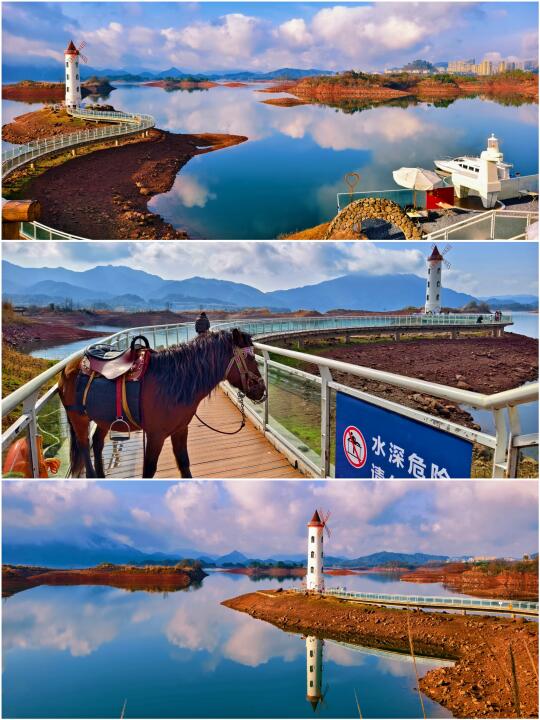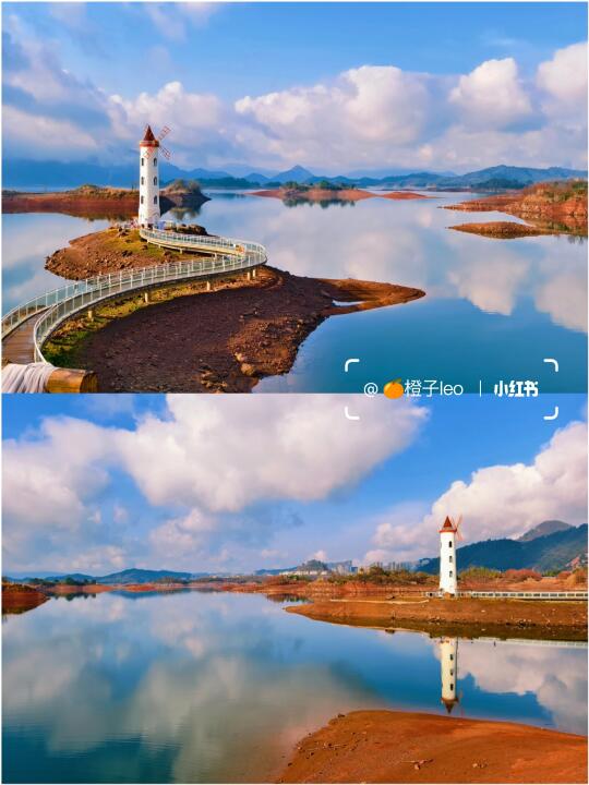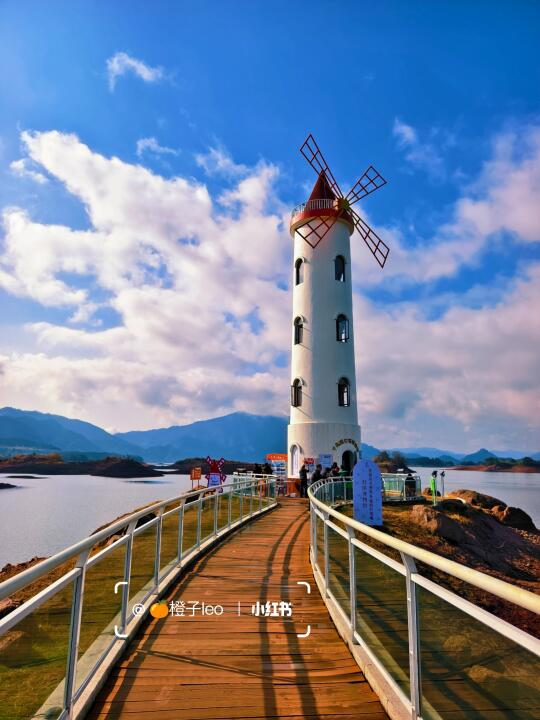 🔥千岛湖灯塔,位于千岛湖啤酒小镇[搜索高亮]临湖一边,有个好听的名字,叫做“千岛之心”,据说是一群大学生爆改完成的作品。 🔥S型栈道把灯塔与陆地相连,灯塔与栈道、湖面、以及远处的岛屿、群山组成一幅唯美的画面,有时还有飞鸟和滑翔机掠过,一下子成为了千岛湖旅游的网红必打卡地。 🔥有些人甚至专门驱车上百公里来打卡拍照。