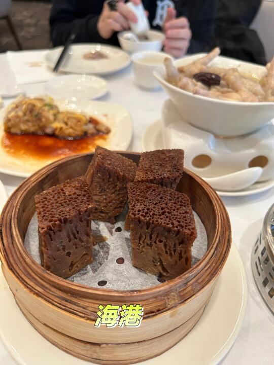 [种草R]【海港】的【舒芙蕾】是特色,一般早茶餐厅没有,之前凯越也有,但现在没了,总体来说海港的茶点都很好吃,皮蛋瘦肉粥,叉烧酥,榴莲糯米糍,牛肉鸡蛋肠粉,蒸排骨都很好吃,所以喜欢吃蒸舒芙蕾的朋友们直接来海港就对了,不但能吃到舒芙蕾,其他茶点也都可以吃到,他们家的蜂巢糕也不错,蜂巢糕也是我早茶必点的,但舒芙蕾要等45分钟,最好提前打电话预定,或者等位期间让服务生先下单