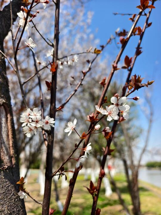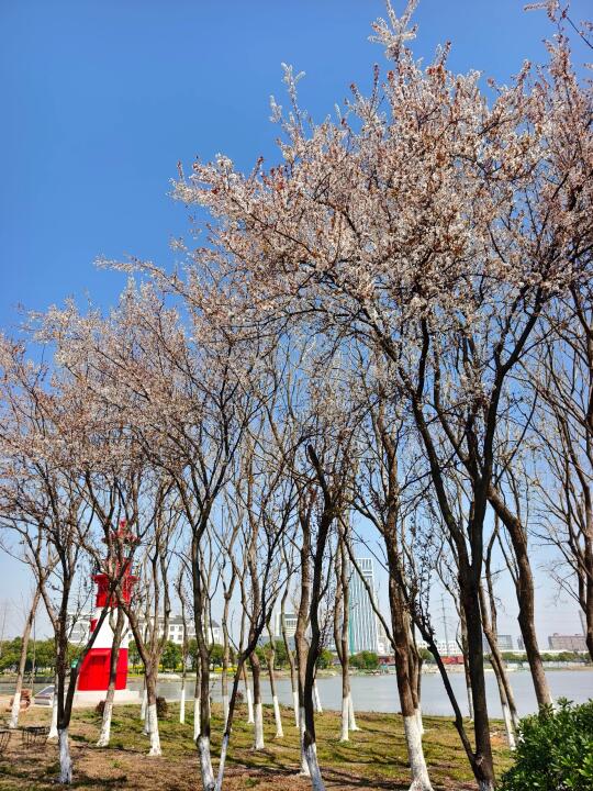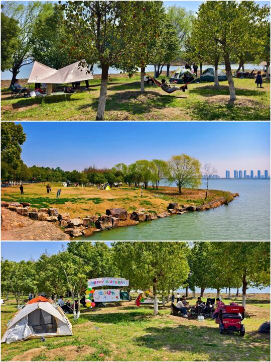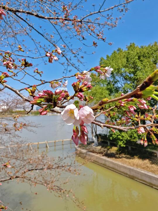 🔥常熟昆承湖闸附近有多棵“染井吉野[搜索高亮]”,是个赏樱的好去处,3月22日赶过来,只是零星开了几朵,要再过几天才是盛开期。 🔥附近的红(紫)叶李倒是开得正盛。 🔥昆承湖畔有不少露营的,还有来给小孩过生日的。