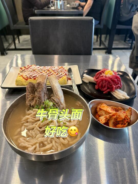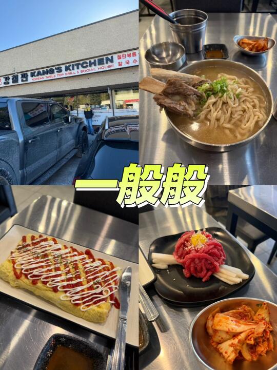 [种草R][Kang’s kitchen]无数小伙伴推荐他们家的【牛骨面】,确实还不错,也是特色,一般的韩餐店没有这道面,面属于又硬又筋道的,比较符合我的喜好,【生牛肉】也真心不错,好吃,清香,重点是吃完我没拉肚子,所以卫生过关[点赞R],不推荐【鸡蛋卷】,完全是用番茄酱调出来的味道,很咸很咸,毫无任何好吃的感觉,可以避雷了