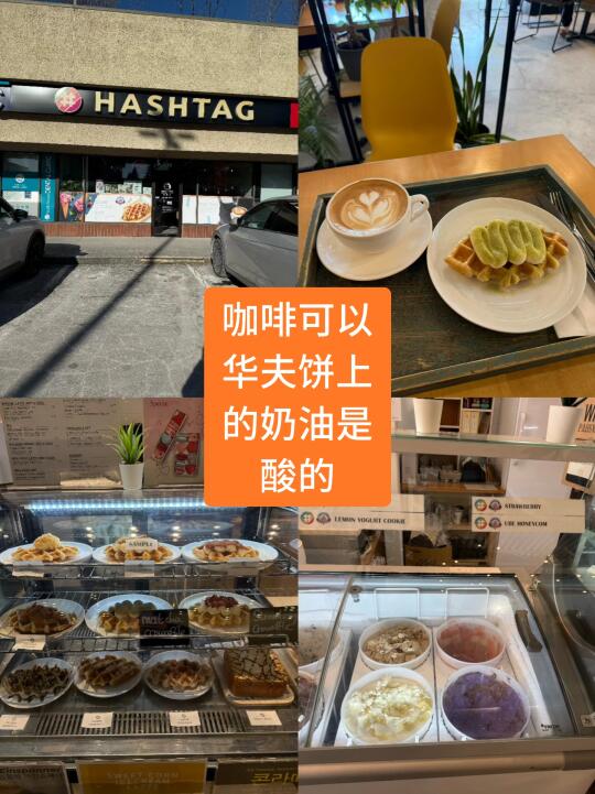 [种草R]【Hashtag】是韩式甜品咖啡,环境不错,屋里很大宽敞明亮,咖啡很好喝,但是【华夫饼】我不推荐,感觉不是现做出来的,没有脆脆香香的口感,重点是上面的奶油是酸的,类似于【Sour cream】那些东西,我还是更喜欢香香甜甜的清奶油