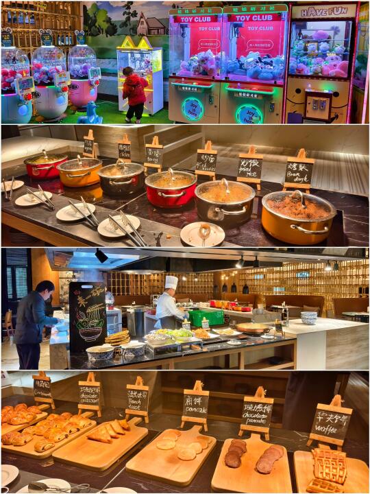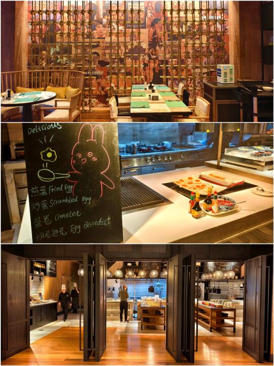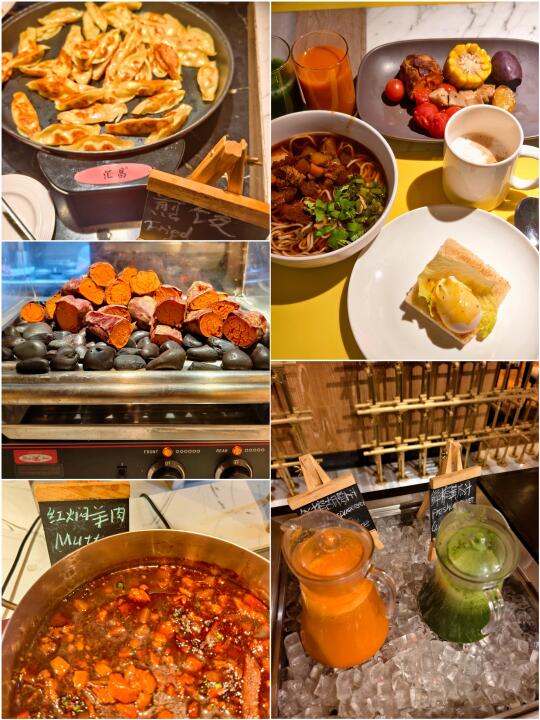早餐在一楼燃餐厅,有鲜榨果汁,但只有胡萝卜汁和黄瓜汁两款。居然还有班尼迪克蛋,只是品相和味道都一般。其他有点特色的就是红焖羊肉、煎饺和烤红薯了。(P13~P16)。