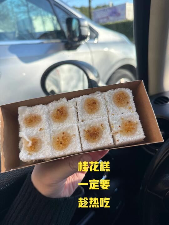 [种草R]特别推荐【桂花糕】是热的,一定要趁热吃,特别香,一股浓郁的米香味,他们虽然有桌子,但是好像感觉都是直接打包好的一盒一盒的年糕拿回家吃,店员说吃不完可以放冷冻冰箱,想吃的时候再拿出热,但我建议一次不要买太多,每次都吃新鲜的口感最好