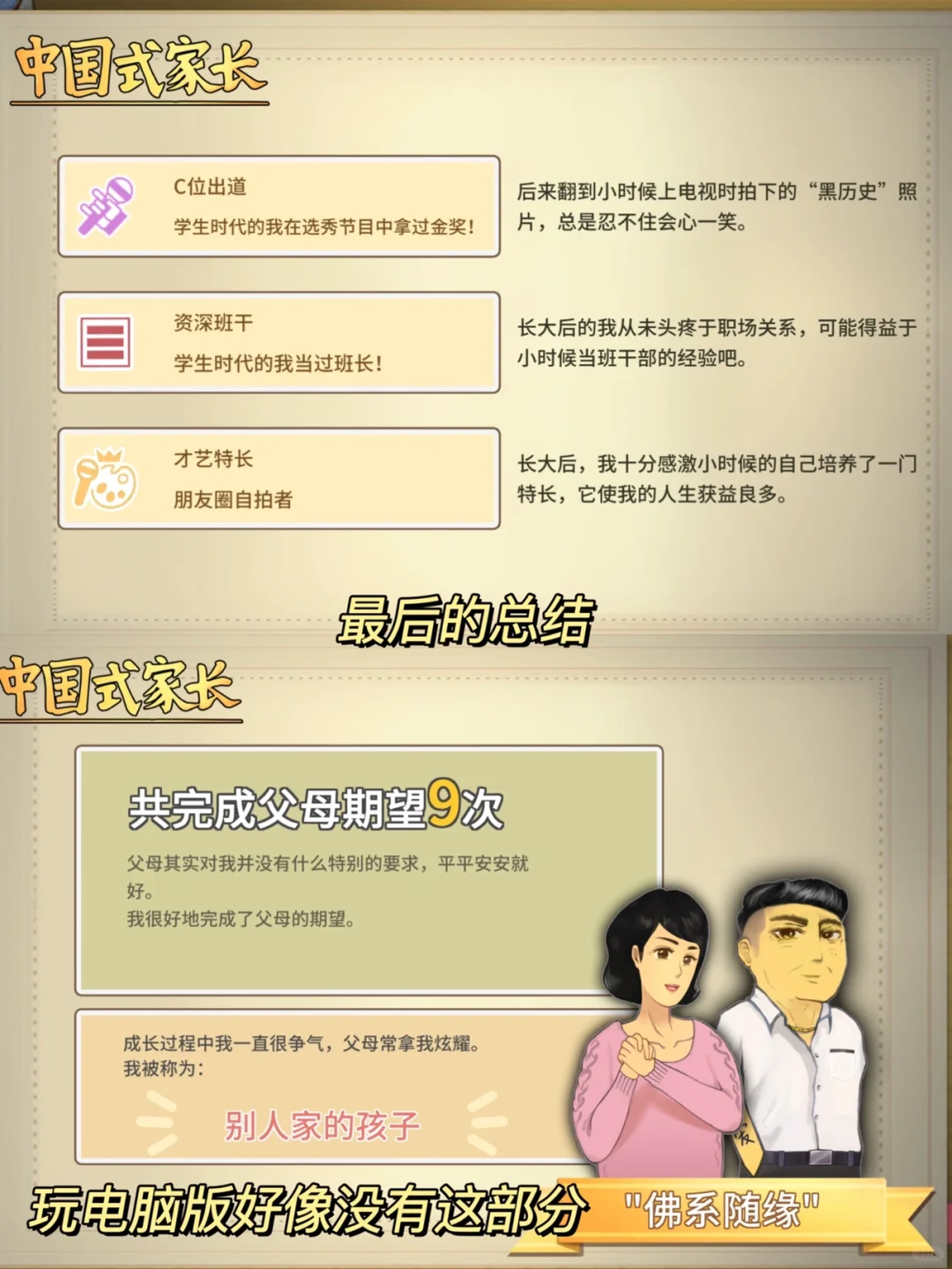❣️名称:中国式家长 ❣️设备:端游、苹果(美服) ❣️类型:养成、模拟、单机、生活、休闲、角色扮演 · 🔺好几年前在steam上玩了好久,这种类型的真的非常喜欢。最近看到手机居然可以免费玩了,而且还有一些新增的功能,真的一打开就感觉过去了几个小时‼️喜欢这种养成类游戏的朋友们千万不要错过啦~ ·