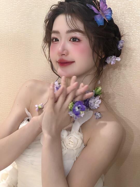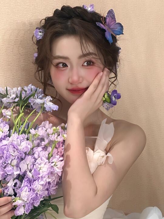 鲜花造型 新娘造型 新娘妆容 氛围感鲜花 花仙子 氛围感发丝 白纱造型 春日妆容