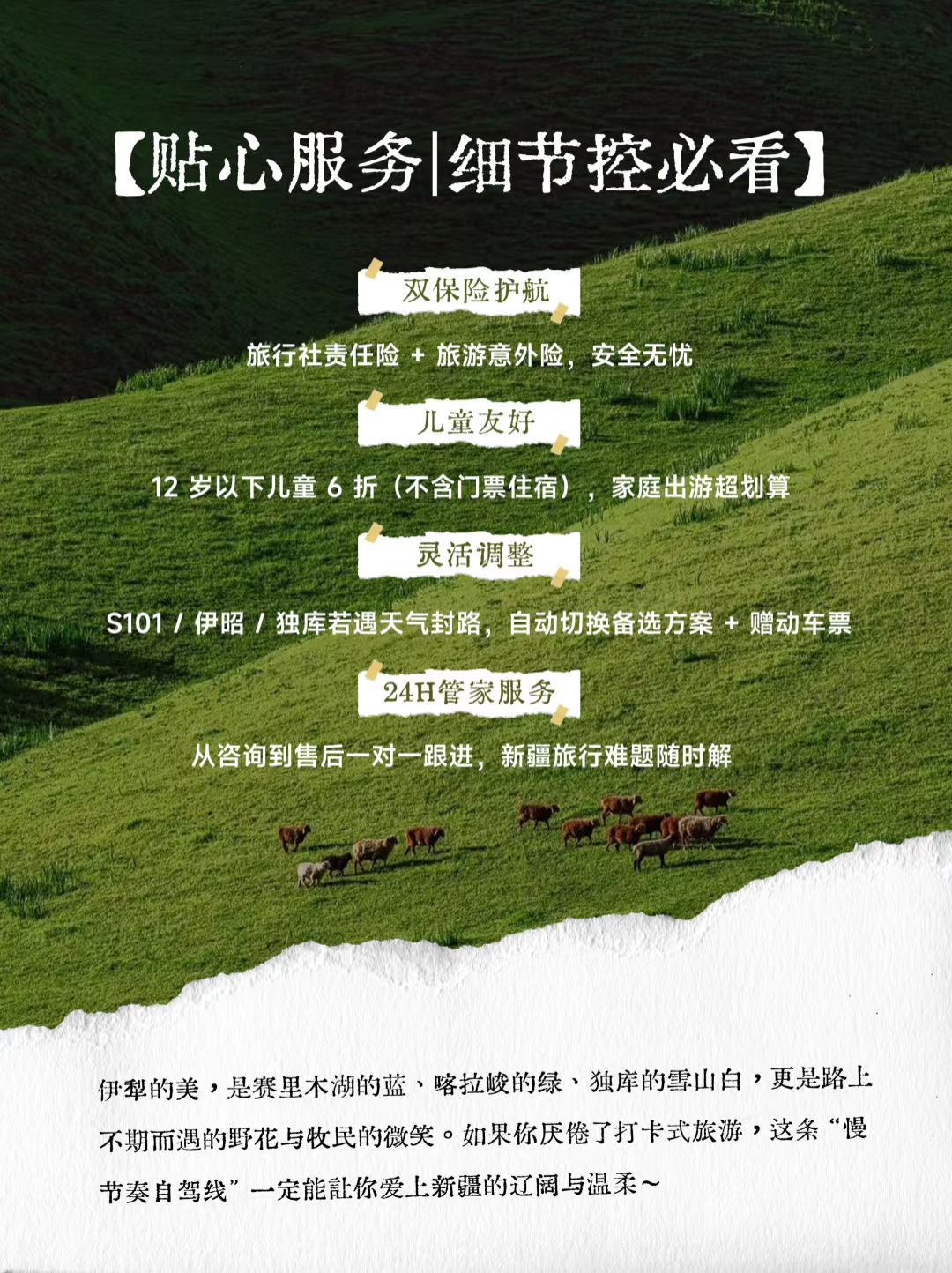 这条「慢游伊犁」把草原 / 冰川 / 花海 / 古道全串联