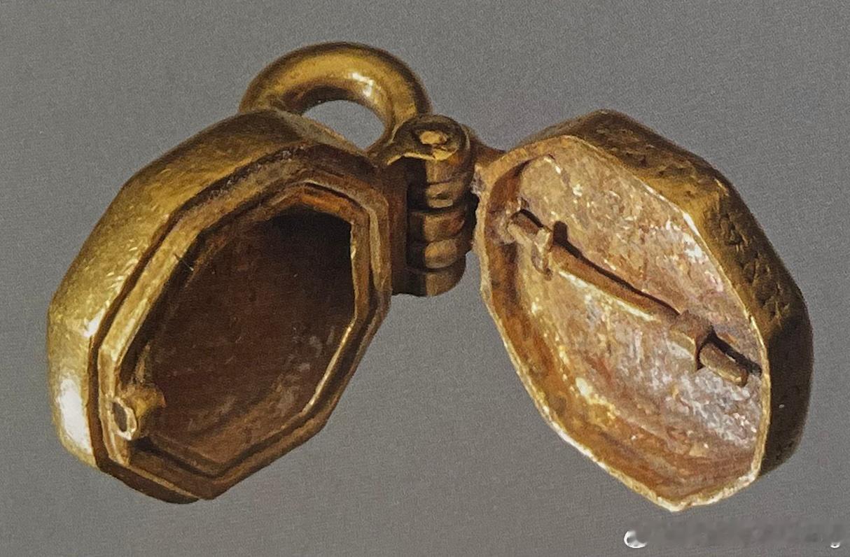 这个八角形的小盒子由黄金制成,正面装饰着两个场景,上景描绘的是伯利恒马厩中的圣家族,下景描绘的是马吉人向圣母和抱着礼物的孩子靠近。将从场景中凸出的针向上拉,小盒拉开,露出一个小空间。这里曾经存放着来自圣地的泥土、朝圣者教堂的蜡烛蜡油或圣物,包括圣人的身体部分或者与圣物接触后的一块布。