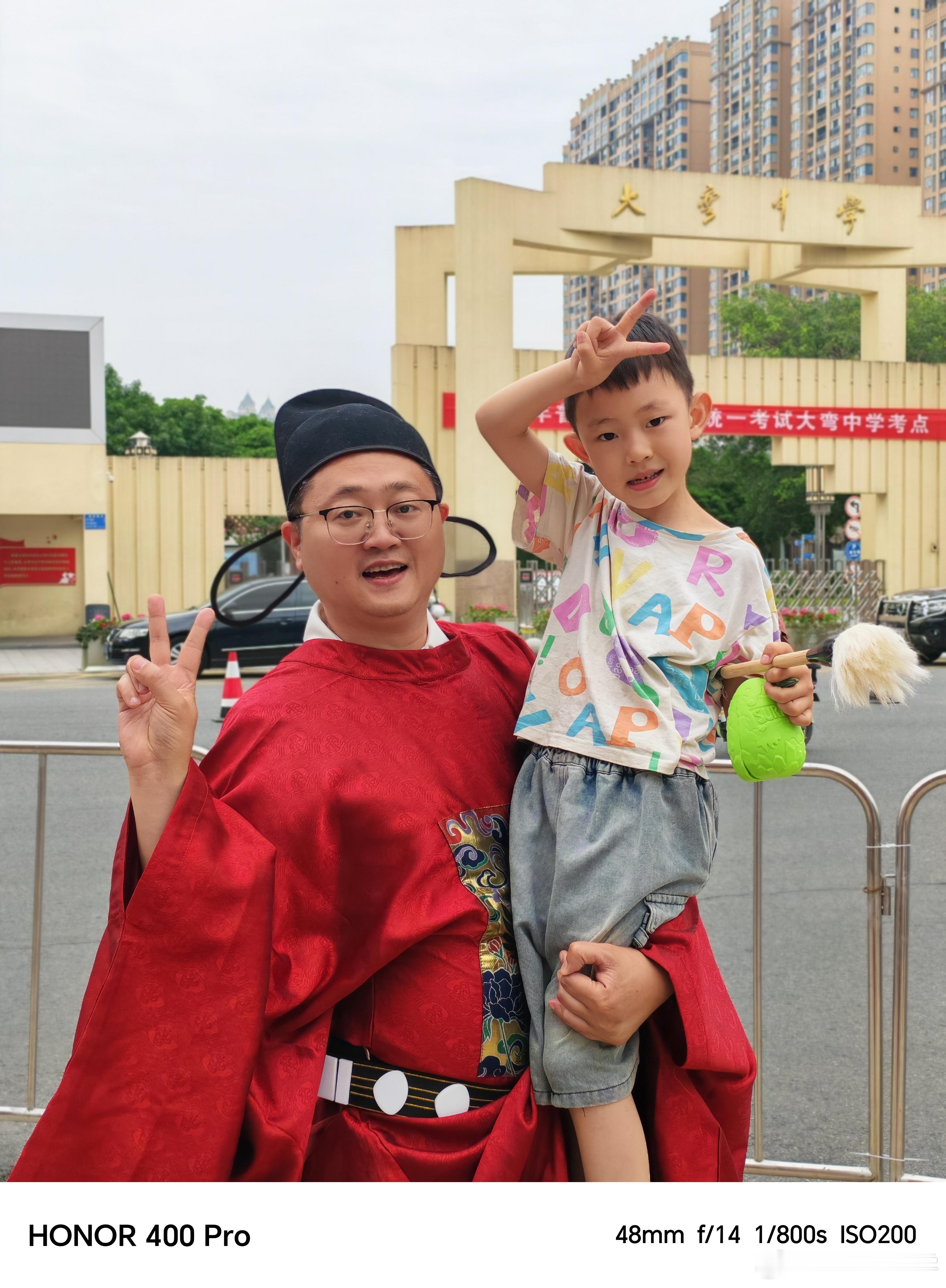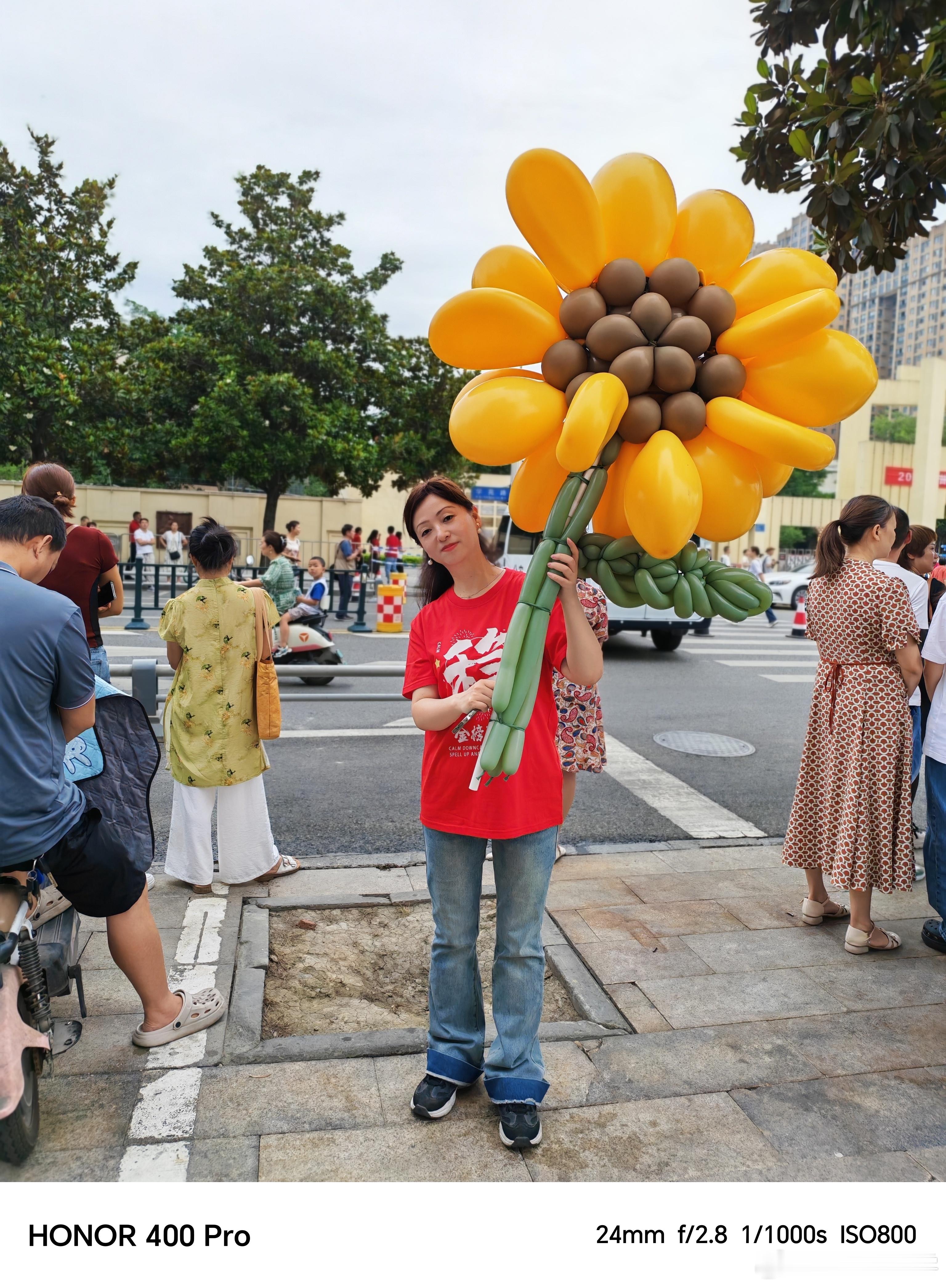 今天高考,我家就住在学校旁边,发现人特别多,考场内学生努力写作,高考场外家长花式叠buff你看看用荣耀400 Pro拍摄的人像照片,是不是很有感觉?为了娃高考爸妈有多努力不仅穿状元服装,还有向日葵摆件,真的很可以[并不简单]
