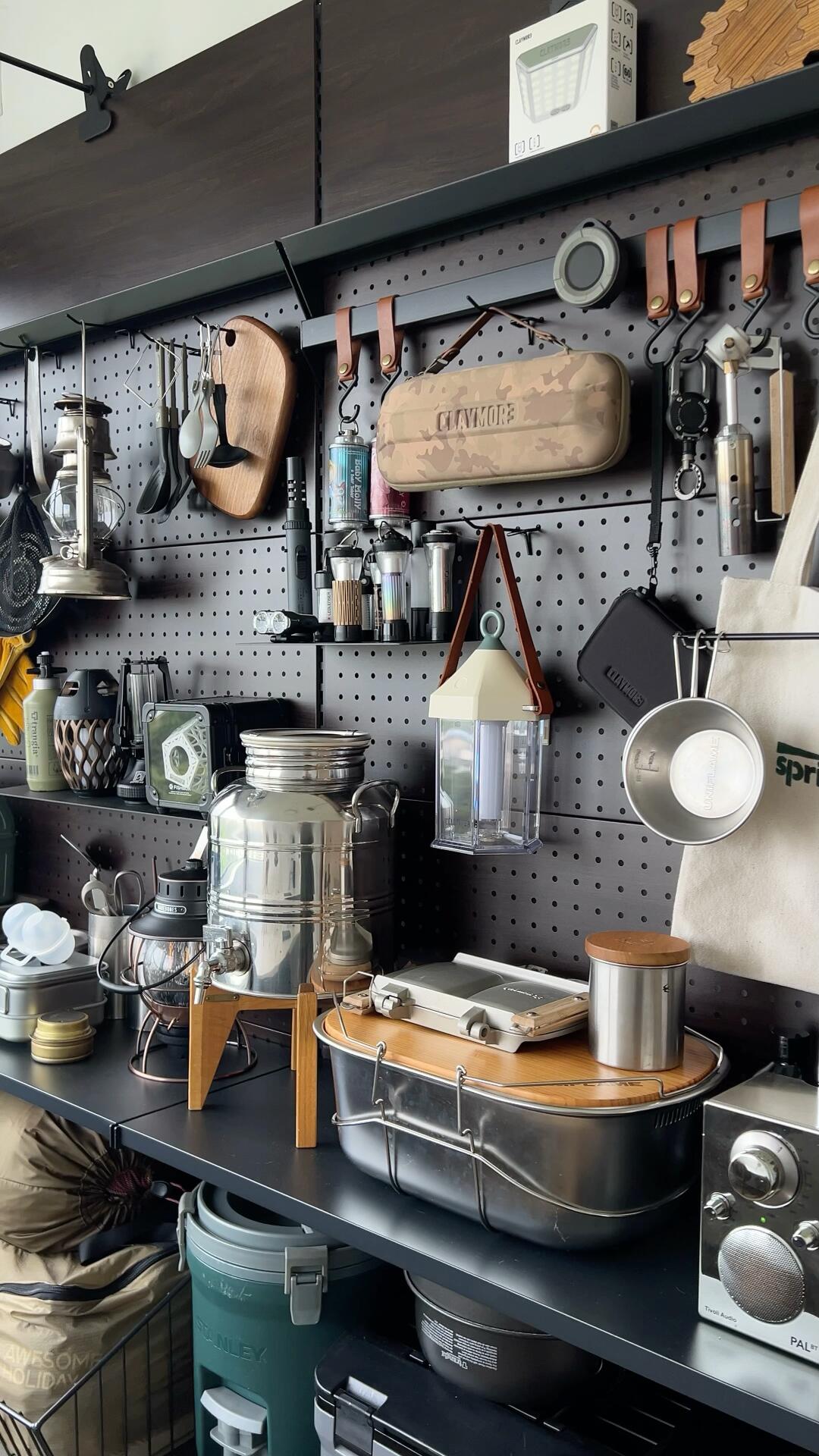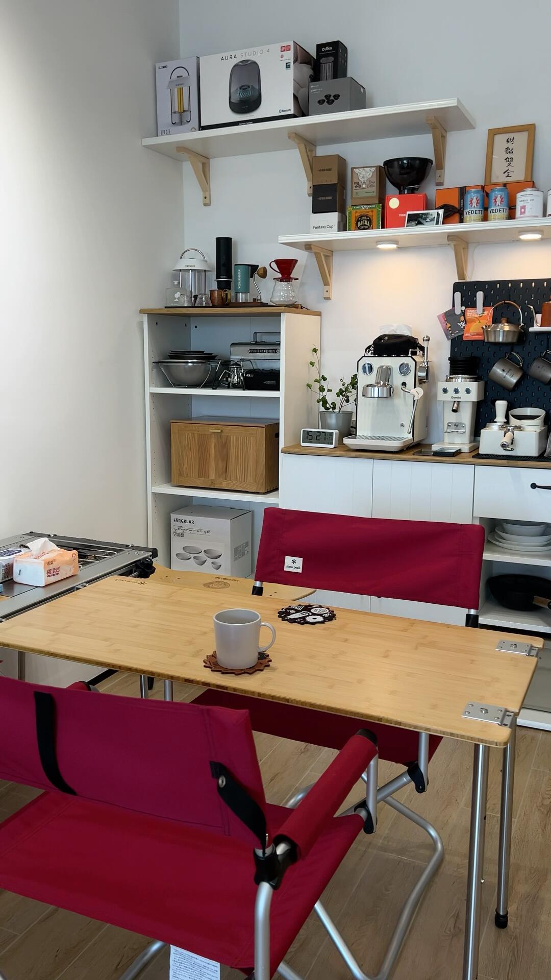 最近几个月都在忙这个,作为一个户外人的家应该是什么样子的[捂嘴笑R],餐桌是不需要买的,雪峰igt组合就够用,茶几不需要买的,tc的折叠竹桌刚刚好。 终于拥有了梦想中的露营装备墙在这个非热即雨的夏天,终于实现在家露营,吹着空调喝咖啡。