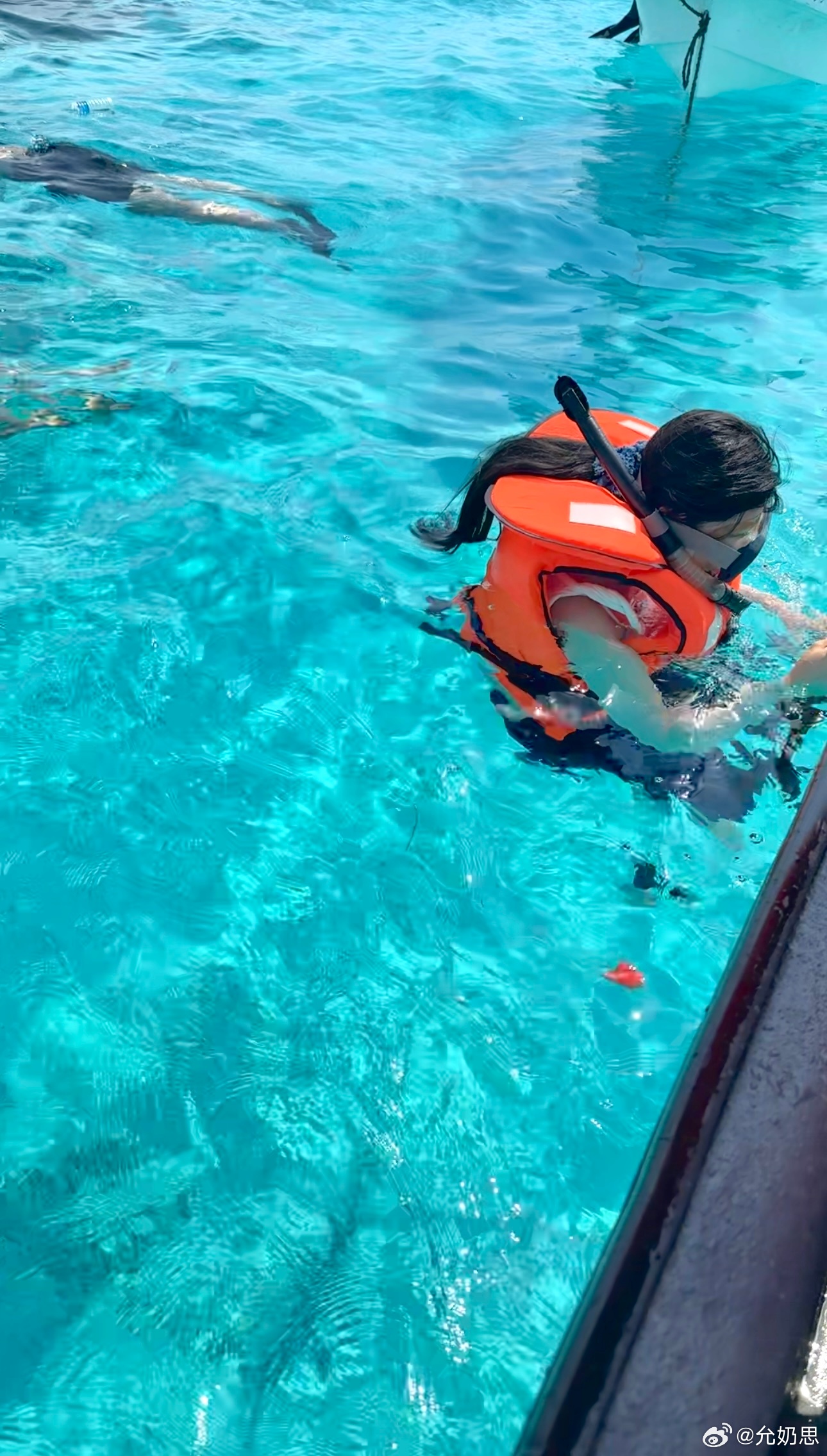 不会游泳但完成了人生第一次浮潜 看到了很大的鱼群 非常清澈的海底[泪]