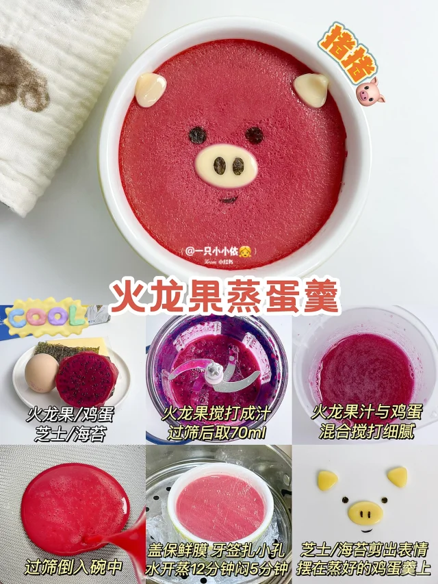 猪猪🐷火龙果蒸蛋羹