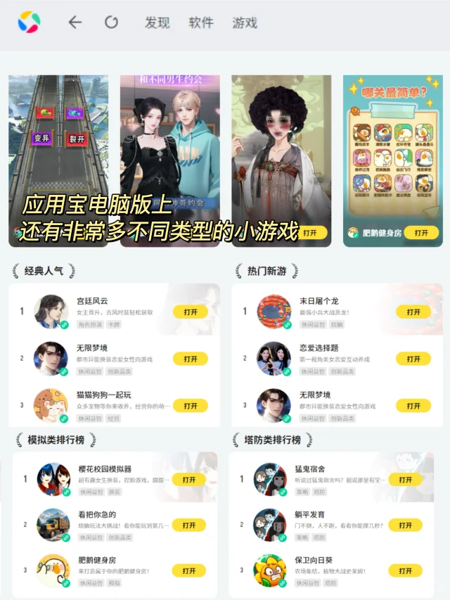 💓回到90年开早餐店+小卖铺⁉️这复古的画风和各种老物品!真的感觉太有回忆了[哭惹R]。 游戏内,我们需要白手起家,把每个废弃的店铺,从打扫开始,一步步发展起来,每一个店铺都体验感满满,开店的每一种玩法都能一一尝试。 而我们的房间,也会随着我们的发展增加越来越多的复古家具🪑~喜欢复古风的宝子们,千万不要错过~ 💗除了这款复古游戏,应用宝电脑版里还有古风满满的宫廷游戏🎮和各种不同类型的游戏,都是可以直接在💻体验的~真的是摸鱼宝贝‼️