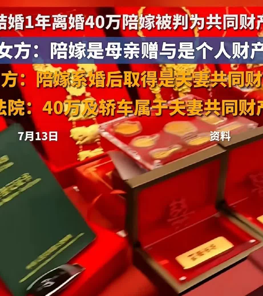 女子结婚一年离婚,40万陪嫁竟被判为婚后财产! 女方:陪嫁是父母赠予的个人财产