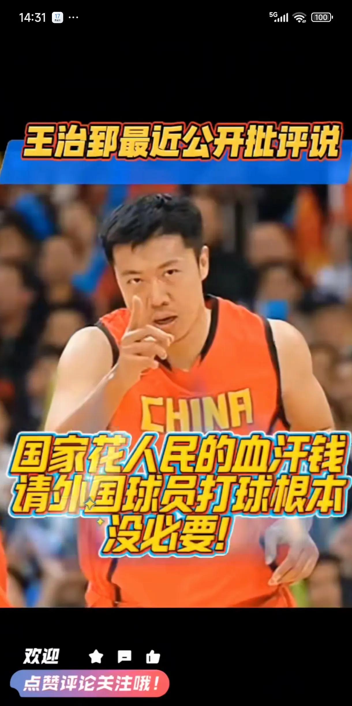 中国篮球名宿王治郅最近公开批评说:国家花人民的血汗钱请外国球员打球根本没必要。这