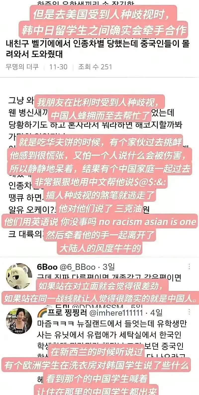 “中国人完全不忍,绝对不忍,真的真的不会忍,他们好像有强烈的大陆自豪感,绝对不会忍。”这是一个韩国人对海外华人的评价,他们说在白人国家经常有一些歧视亚裔的行为,如果有中国在场,他们一定会发飙,并且冲在前头。 中国人一般会用母语先开骂,接着用英语和当地话骂,总之就是毫不示弱,哪怕被侮辱的是韩国和日本人,中国人大多也会上前大义凛然的撑场,并且最后带走日韩人说一句:我们亚洲人是一体的。 看到这样的评价,我挺自豪!但是还是有一说一像咱这种游客偶尔出去玩,应该做不到这么硬气,毕竟是人家主场,可能长期生活在那边的华人包括留学生比较了解当地人的习性,敢于这样发飙。 但是中国人确实够硬气很了不起,是事实。因为我们中国人从1949年就站起来了,我们的老一辈告诉我们,中华民族很优秀,白种人可以做到的,我们照样可以做到,且能做的更好。事实证明,就是如此!从建国以来到现在为止,凡是挑衅我国的所有战争,最后的结局全是惨败。朝鲜战争,越南战争,印度自卫反击战,珍宝岛之战......没有任何例外。 到现在这场没有硝烟的战争,贸易战,生物战,科技战,粮食战,还有多多少少的军事试探,全是我们胜。事实证明,中华民族不仅是历史最悠久的,也是最智慧,最大气的民族! 作为华人无论你在哪里,请多为中国人说话,请为自己是中国人感到自豪,因为你值得!