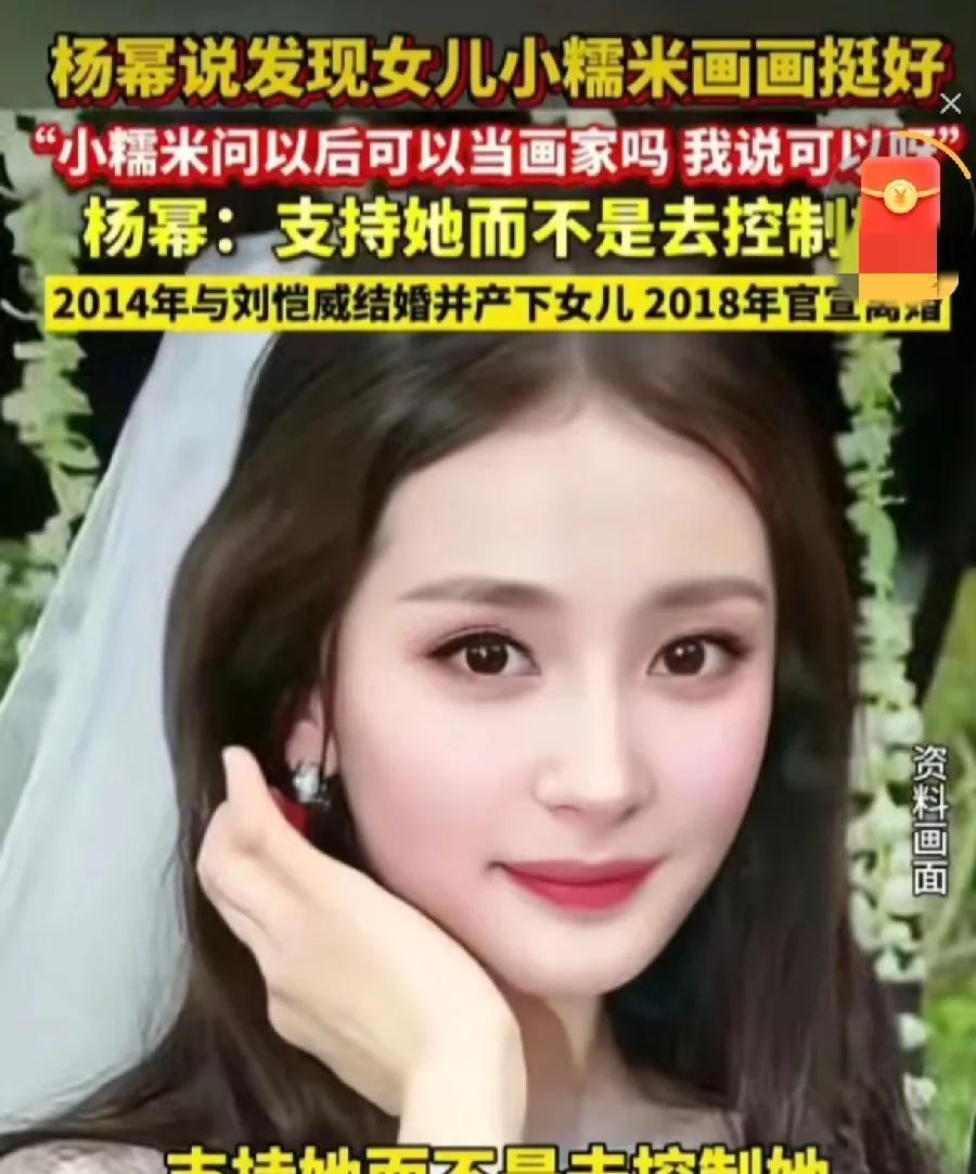 杨幂:“我有一天发现我女儿画画画的挺好,我说你以后想当画家吗?她说可以吗?我说可以啊!我觉得父母对孩子,应该是支持她,而不是控制她。” 杨幂一直都很保护女儿的隐私,不想让女儿被媒体拍到,所以大概率她是不想让女儿走娱乐圈这条路的。 而以她目前的财力,不管女儿做什么,她都能给予支持和帮助,所以在她眼里只要孩子开心就好。 而且女儿喜欢画画,有画画的天赋,以后做一个画家,或者从事艺术行业也挺不错的。 但小糯米会小心翼翼的问杨幂,自己可不可以当画家,就说明在刘恺威和爷爷奶奶给她规划的人生路线中,是没有画家这条路的,希望杨幂能守护好女儿的梦想吧。