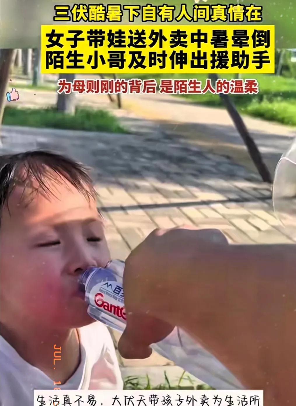 这社会,谁不是为了碎银几两,在37、38度的高温下奔波忙碌?这背后的泪水和辛酸,是那些高高在上的砖家们根本体会不到的。#生活为了碎银# #碎银几两# #爆料# 你看这位大姐,左手受着伤,大暑天里还要带着两岁的女儿,顶着烈日送外卖。不是生活所迫,大热天谁愿意受这个罪? 这不中暑了,她连车子都没有停好,就歪倒在路边树下了。最无辜的还有她两岁的女儿,孩子在家没人照顾,还要跟着妈妈一起受苦。 路过的好心男子打算打120把她送往医院,可大姐说不要不要,她歇一会就没事了。男子给她水喝,把怕女儿中暑让女儿先喝,然后自己才喝。 为了怕单子超时被罚款,她想尽快去送货,但已经起不来了。最后没办法只得联系顾客,得到顾客的理解后,这才安心休息。 男子随后把母女递到诊所,并声称自己出去买水,然后到银行取了一笔钱塞进盛水的装子里面,交给大姐后嘱咐几句就离开了。 让我们为好心的男子点赞,也为大姐这种不向命运低头的精神点赞,这就是心地善良的中国人!这就是吃苦耐劳的中国人! 最后我想对大姐说的是:大姐,挣钱归挣钱,但我们一定要注意安全。生活不易,且行且珍惜!