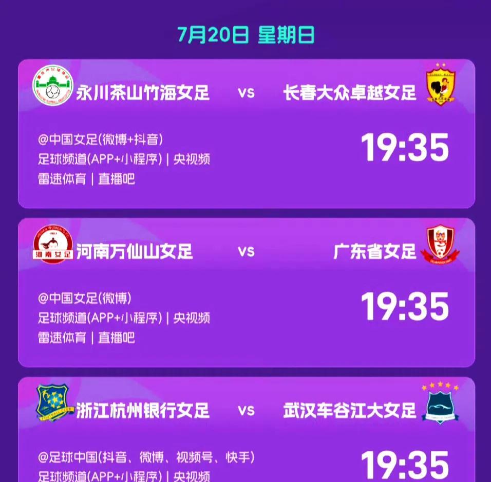 女超联赛恢复较量,第11轮,武汉女足新引进的西班牙、加纳精英将闪亮登场,冠军志在必得。 周六(7月19号)的三场对决分别是: 陕西女足(主场)PK江苏女足; 辽宁女足(主场)PK北京女足; 山东女足(主场)PK上海女足。 周日(7月20号)的三场对决分别是: 重庆女足(主场)PK长春女足; 河南女足(主场)PK广东女足; 浙江女足(主场)PK武汉女足。 12支队伍、六场比赛全部安排在晚上19∶35开球,在两支球队实力相当的情形下,高温酷热很可能是左右比赛结果的因素之一。 另外一个影响比赛结果的,则有可能是刚刚从国家队返回球队还来不及合练的国脚,离开俱乐部20余日,马上融入母队比赛体系不容易。 第三个是特例,比如三天前一号门将刘晨突然被U20女足国家队莫名其妙补招,这对面临血拼上海女足的山东队无疑是当头一棒;而在国家队训练中手腕受伤的江苏女足主力门将徐欢,能够出战与陕西女足的对决吗?