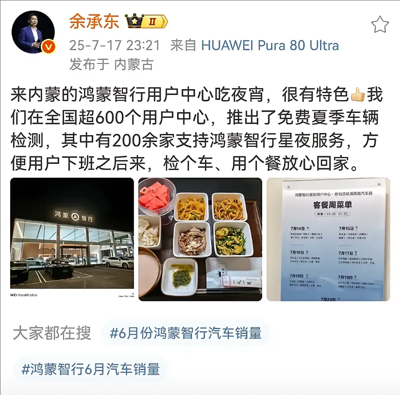余大嘴去内蒙出差,跑去当地的鸿蒙智行用户中心蹭饭。