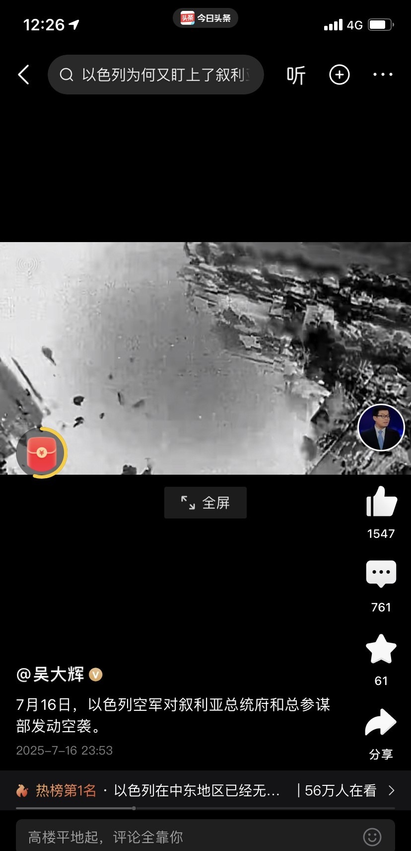 以色列这波操作,简直是无法无天!炸总统府,炸总参谋部,这是赤裸裸的挑衅!叙利亚人民的血泪,难道还不够多吗?国际社会都瞎了吗?就眼睁睁看着以色列这么嚣张?