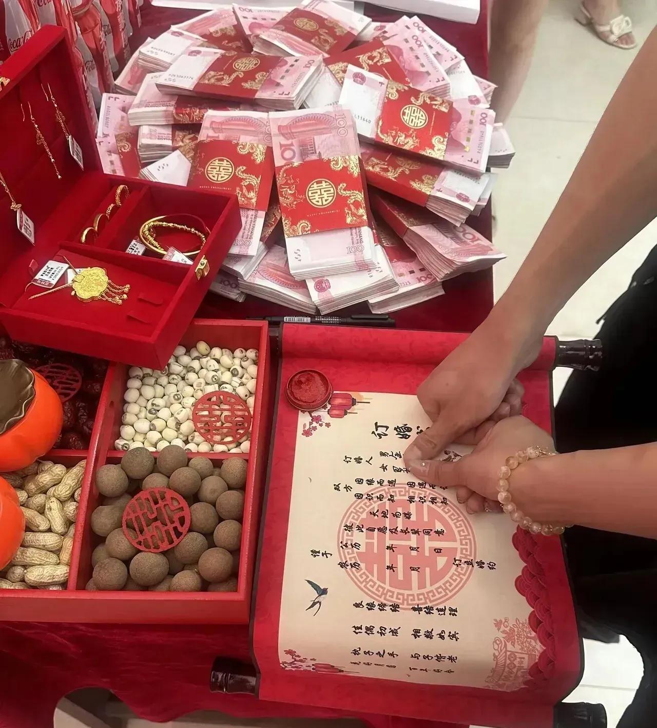 河南订婚彩礼38.8万,五金,上车费,改口费,另算计算。 娶个媳妇,会不会花太多