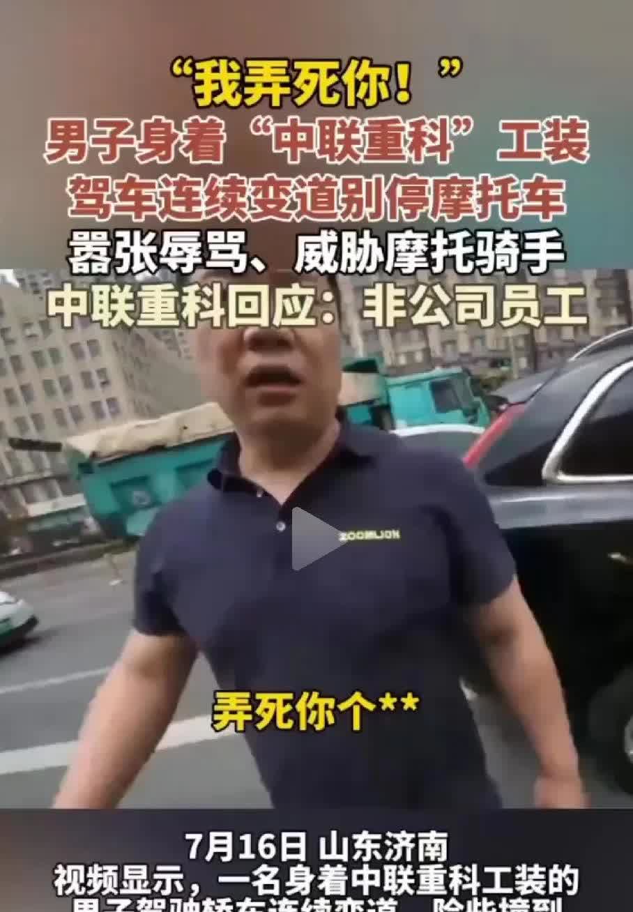 济南“工装男”这么嚣张啊,吓死我了,以后遇到这种违章的,不敢随便说话了,骑摩托车的小伙子本来很想指责指责,一看这架势,连连道歉,差点被揍了。穿的衣服是某某公司工装,但是中联重科郑重澄清该男子不是他们公司员工,其行为与中联重科没任何关系,不能再臆测。有人网上扒拉出来一张照片,不知道是不是一个人,看背景是某某代理商,胸前也放着zoomlion话筒,也穿着类似工装,假如是同一人,他这个代理资格就要被撤了。 太猖狂了,看来本事不算小。