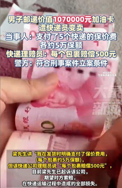 江苏扬州,一男子将存有107万元的加油卡寄给客户,谁知包裹到达目的地后,客户却拖