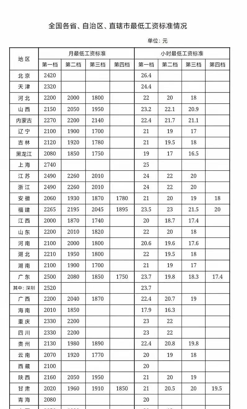 截至2025年7月1日,各省市最低工资标准公布,大上海以2740元一马当先,看来