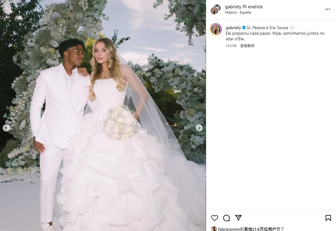 皇马19岁球星恩德里克完婚!老婆是真漂亮! 可以用上什么词? 女大三抱金砖! 美