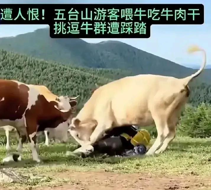 “不作死就不会死”!游客给牛喂牛肉干还拿棍子挑逗,被牛群追着踩时哭着喊景区没管好? 说真的,牛本来安安静静吃草,是你非要用牛肉干(对食草动物来说多膈应)挑衅,拿棍子戳人屁股——换谁不火大? 动物的脾气从来不是用来试探的,景区提醒写得再大,也拦不住想“作死”的手。这账算下来,到底是谁该为自己的冲动买单?评论区聊聊,你见过哪些游客的迷惑操作?