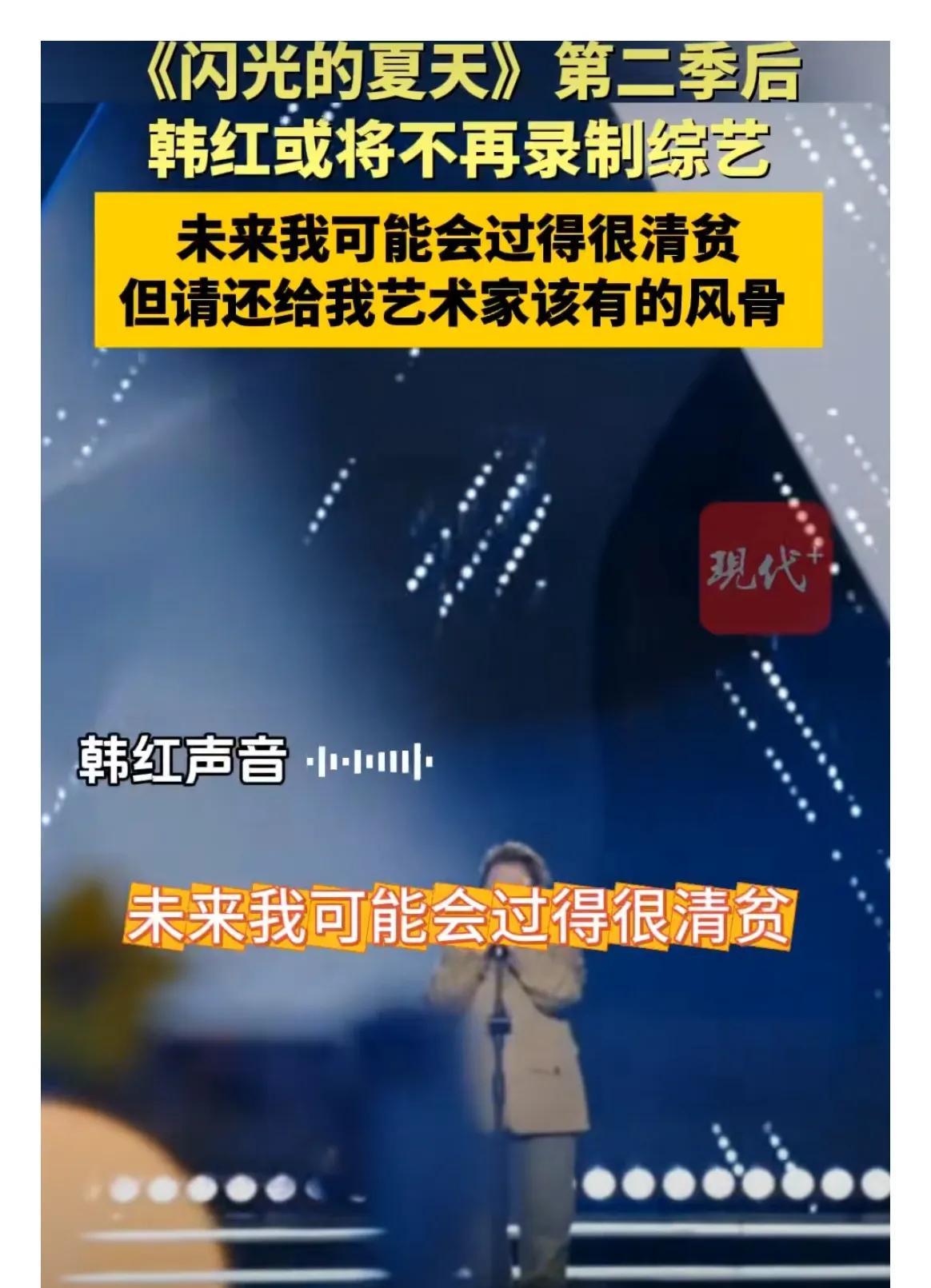 #韩红放话:以后不录综艺了!宁可清贫,也要守住艺术家的骨头# 韩红这次是真“硬气