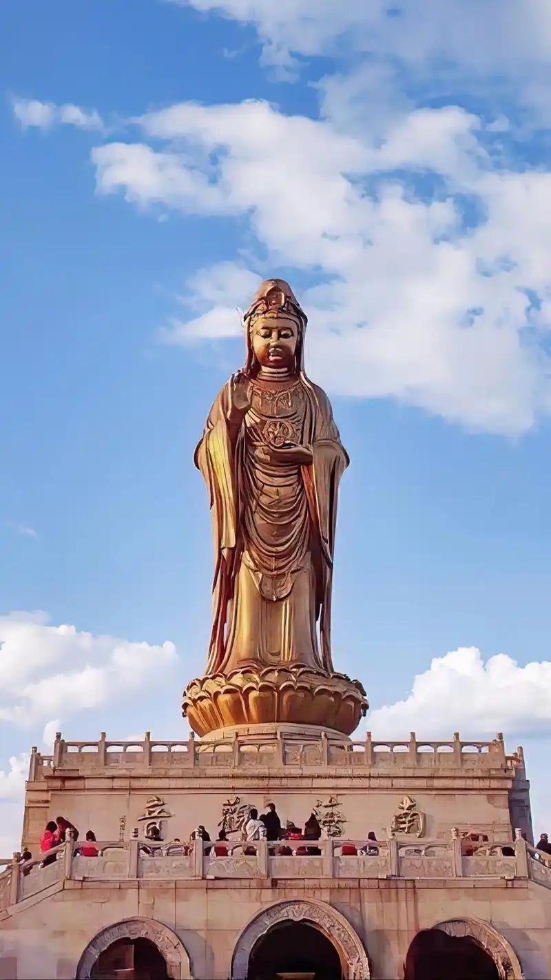 1️⃣.普陀山风景区,可以打卡普济寺、法雨寺、慧济寺和33米观音铜像等美景。