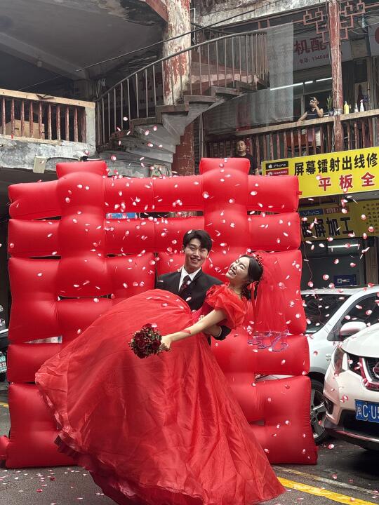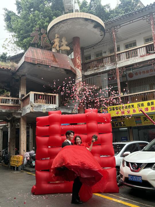 喜嫁婚纱照花蕠 红色婚纱 中式婚纱照 喜嫁婚纱照大喜字婚纱照 婚纱照 泉州婚纱照泉州市鲤城区侨乡商 街老街道婚纱照
