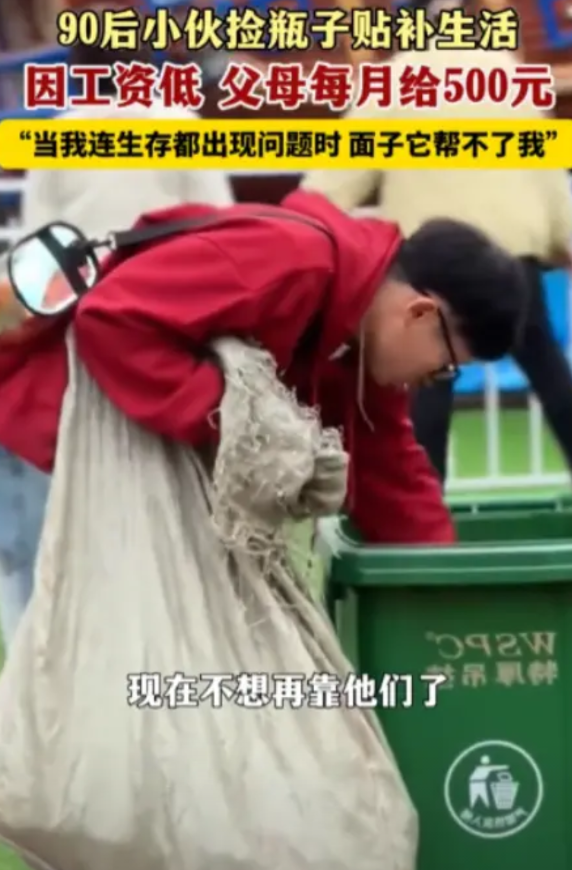 “凭本事赚钱不丢人!”河南洛阳,90后小伙因为每月工资太低,加上父母年纪越来越大,便决定另辟蹊径,靠捡瓶子赚钱,可没想到此举引起了争议,不少人认为捡瓶子太丢人,不料小伙的一句话让所有人醍醐灌顶! 王建军在洛阳一家小公司做行政,每月到手工资2800元,房租800,吃饭1000,交通费200,剩下的钱刚够日常开销,前几天母亲生病住院,他连医药费都凑不齐。 那天晚上,他路过小区垃圾桶,看到里面有不少矿泉水瓶,想起小时候家里穷,父亲经常带他捡瓶子卖钱的往事,他犹豫了一下,还是弯腰捡了起来。 一个晚上下来,他捡了三大袋瓶子,卖了18块钱,虽然不多,但总算是个补贴。从那以后,他每天下班都会绕道去几个固定的地方捡瓶子。 刚开始确实不好意思,有次正捡着,碰到了高中同学,对方愣了一下,然后假装没看见快步走开了,王建军说那一刻特别尴尬,但转念一想,自己又没偷没抢,有什么好丢人的。 他把这段经历拍成视频发到网上,本意是想记录生活,没想到评论区炸了锅,有人说他作秀,有人说他励志,还有人质疑他是不是在卖惨博同情。 其实王建军的情况并不是个例,据废品回收站的老板透露,现在来卖瓶子的年轻人越来越多,有的是兼职补贴家用,有的是失业后的临时过渡,一个矿泉水瓶能卖一毛钱,一天捡个两三百个,就是二三十块钱的收入。 住在王建军隔壁的张阿姨说,经常看到他晚上十点多还在小区里转悠找瓶子,有时候还会帮忙把垃圾分类做好,她觉得这小伙子挺实在的,不像有些年轻人眼高手低。 王建军的同事小李也知道这事,他说王建军白天工作很认真,从来不迟到早退,下班后去捡瓶子,也是为了多赚点钱孝敬父母,这有什么好笑话的呢。 其实捡瓶子这事,早就不是什么新鲜事了,在很多城市,都有专门的“瓶子大军”,他们有的是退休老人,有的是下岗工人,也有像王建军这样的年轻人。 回收站的数据显示,一个中等城市每天能回收几十吨的塑料瓶,按照现在的价格,这是一个不小的市场,有些专业的拾荒者,一个月能赚三四千块钱。 环保专家表示,捡瓶子其实是资源回收的重要一环,这些看似不起眼的劳动,为城市的垃圾分类和资源循环做出了贡献,从这个角度看,捡瓶子不仅不丢人,反而值得尊重。 王建军说,他不指望靠捡瓶子发财,只是想在力所能及的范围内多赚一点,等父母的医药费还清了,他打算报个培训班学点技能,争取找份工资更高的工作。 你怎么看待王建军捡瓶子这件事?如果是你,会放下面子去做这样的工作吗?