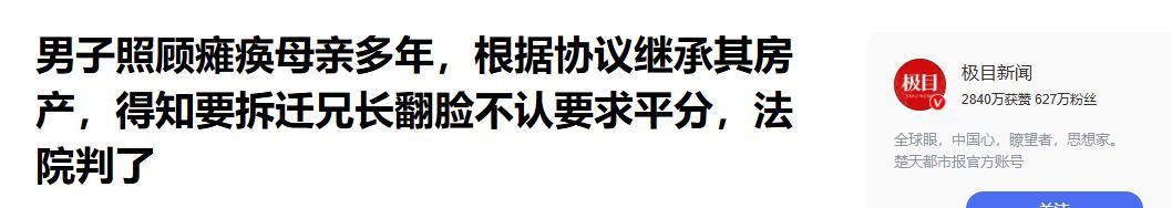 “判得好!”上海一男子伺候瘫痪母亲5年,母亲去世后,按协议由他一人继承母亲的房子