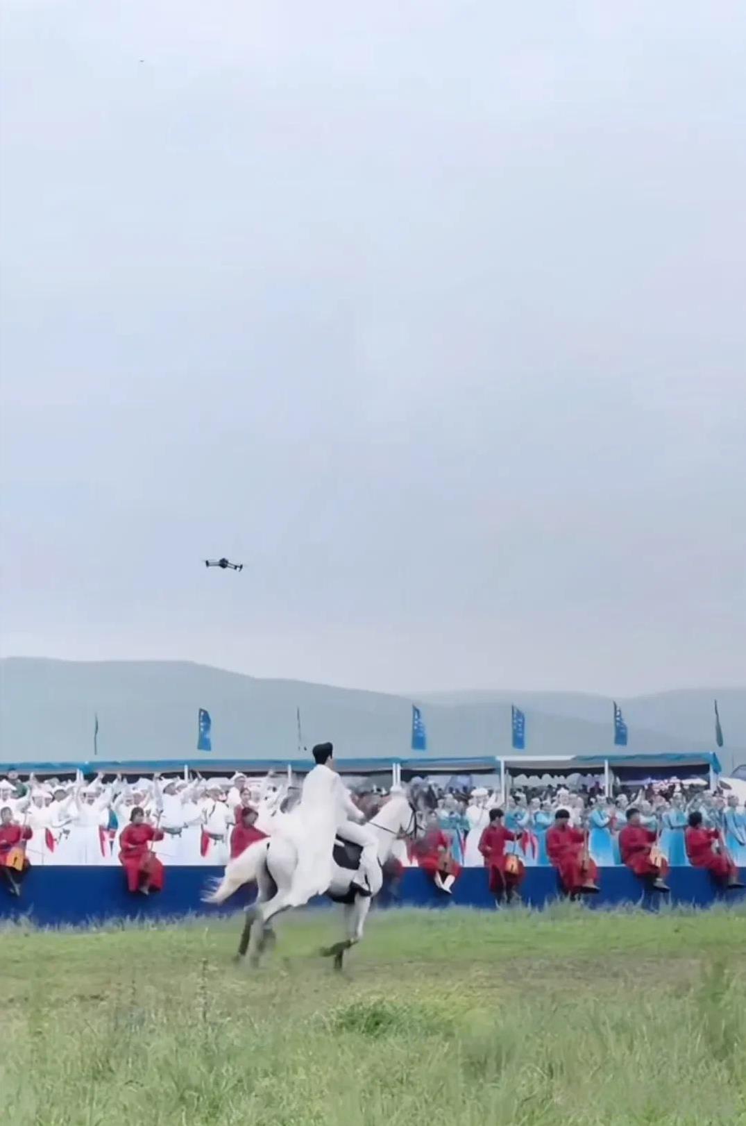 阿云嘎骑马亮相那达慕大会。家人们谁懂啊!在内蒙古自治区第35届草原那达慕开幕式上,阿云嘎一袭白衣骑马亮相,直接惊艳全场! 以往看他在舞台上,是精致的歌手形象,这次在那达慕,他骑在矫健的骏马上,长发随风飘,浑身散发豪迈的草原气息。现场1000名骑手持国旗策马奔腾,画面壮观。阿云嘎高歌一曲《骏马归来》 ,嘹亮歌声与马蹄声交织,这才是真正的草原之子 ,太帅了!#爆料# #阿云嗄# #那达慕开幕会#