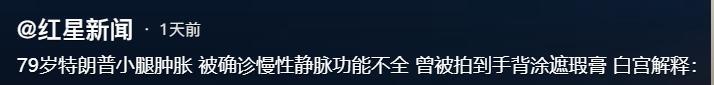 特朗普要成为第二个拜登,据媒体7月18日报道,多次拍到特朗普手背淤青,脚踝肿胀还穿着靴子,怀疑他身体出了毛病,果然,日前白宫证实特朗普确实患病了,而且得了静脉疾病。 静脉病变是老年人常见的慢性问题,压力大、经常久坐或长期站立的人群更容易出现,表现多是下肢肿胀、手背、脚踝等部位出现瘀斑,这些都会让公众觉得,他的身体能不能继续应付高强度的竞选和政务? 特朗普过去总把自己形象打造得精力充沛,与拜登形成对比,但从趋势来看,年龄带来的健康困扰没有人能完全避免,和拜登相比,特朗普的年龄虽然略小,但同样面临慢性疾病的风险,他患上静脉疾病这件事,再次把高龄领导人的健康问题摆在了台面上。 美国这些年有不少总统候选人和高官被曝出健康问题,罗斯福、里根都曾因病影响任期,领导人的身体如何,实际上会直接牵动国家治理和政策延续,外界对特朗普身体状况的担忧,并非空穴来风。 静脉疾病如果只是轻度,大多不会影响重大决策和认知,但也不是完全没风险,如果合并有心血管、代谢或者其他慢性病,还是需要格外注意,现在美国社会和国际社会都希望候选人能更透明公布健康状况,这是对国家稳定和公众负责。 特朗普手部和腿部的异常让不少人开始担心,今年的竞选活动节奏如此紧密,他是否能像以往一样高强度应对各种挑战,美国不少民众呼吁加强政要体检、公示机制,就是想看到一个对健康严格把关的制度。 特朗普这样的角色,他面对的媒体关注远超普通政客,一旦出现身体异样立刻会上热搜,也容易被政治对手利用。 特朗普的健康问题反映的也是美国高层政治的普遍现象,这几年高龄化趋势越来越明显,政界没法例外,不只是美国,全球不少国家政坛也面临类似挑战。 随着舆论的讨论增多,有关“年龄上限”“体检标准透明”等话题变得很有现实意义,这也正推动整个社会思考怎么在保护个人隐私和保障国家利益之间找到平衡点。 特朗普的健康状况,无论是特殊靴子的出现还是曝光的淤青和肿胀,并不是头一次成为全国舆论关注的点,医疗技术发达有专业团队可以协助政要科学养护,但真正要解决外界疑虑,信息公开和科学解读还是最有效的方式。 美国社会对政要健康的透明诉求越来越高,要求公开体检报告也变成舆论常态,这种机制既是对选民负责,也是对自己负责任。 每次选举都是一场全民关注的大考,候选人的健康状况关乎未来几年美国领导力的延续,在高强度竞选期间,无论是谁在高龄压力下都需要科学管理身体,及时介入一些慢性病变,防止小问题发展成影响工作的隐患。 特朗普和拜登这样年过七旬的候选人,面对激烈的社会竞争和复杂的国内国际环境,健康变得比以往任何时候都重要。 个人观点,仅供参考 参考信息:红星新闻(79岁特朗普小腿肿胀 被确诊慢性静脉功能不全 曾被拍到手背涂遮瑕膏 白宫解释经常握手导致的)