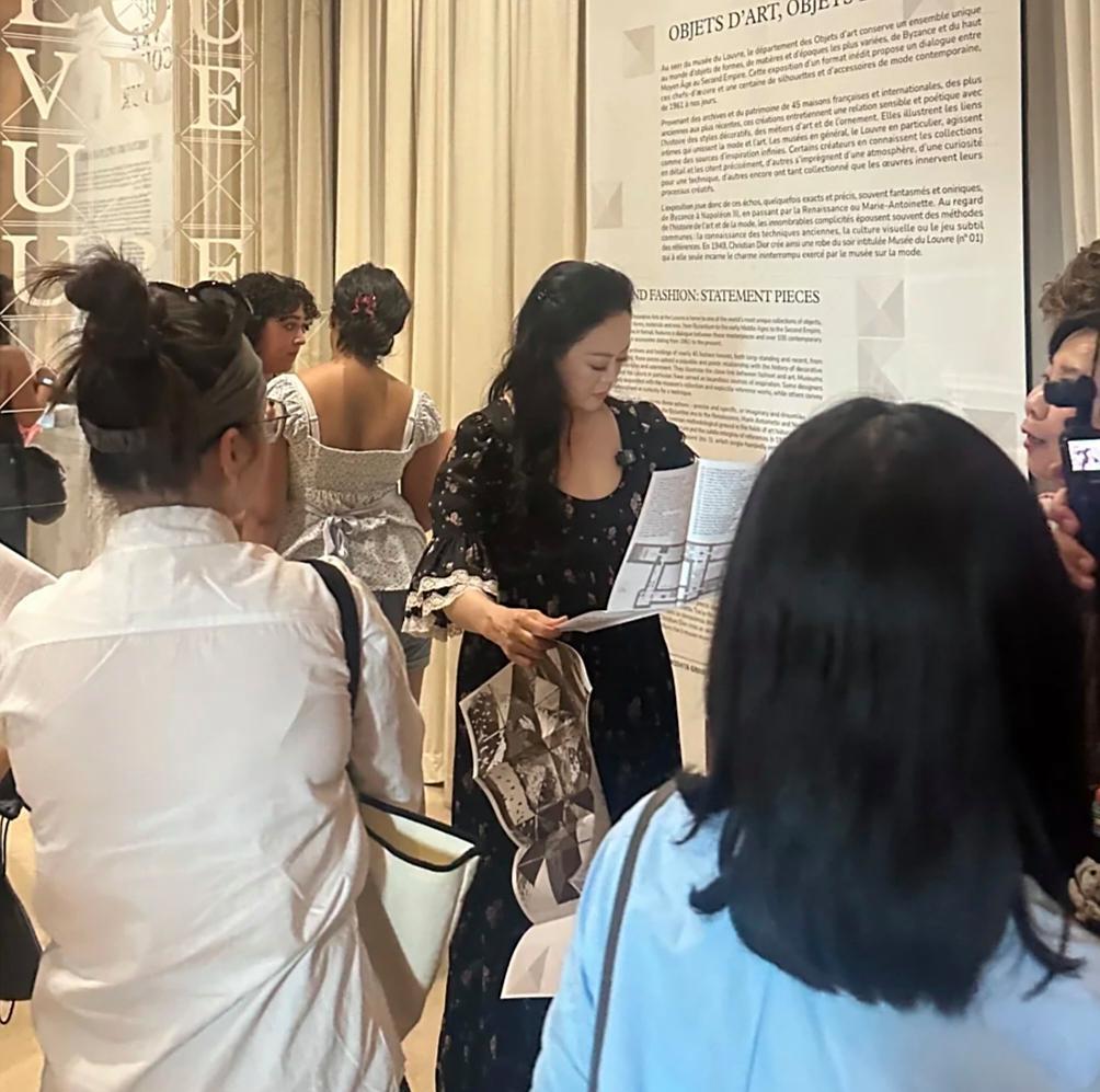章小蕙在巴黎卢浮宫看展,这身打扮真的一言难尽,造型真的好老气,身材好臃肿,个子看起来好矮。