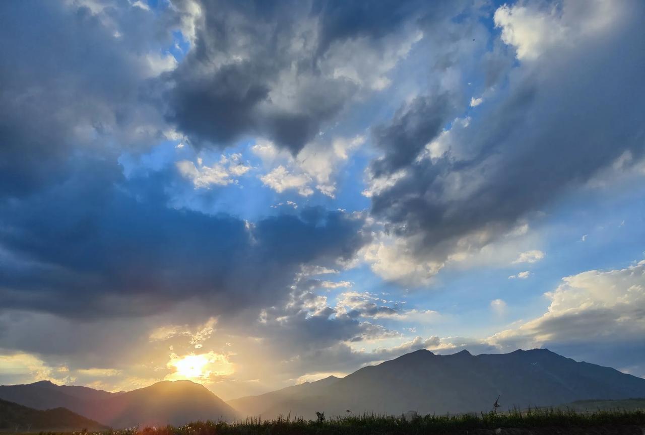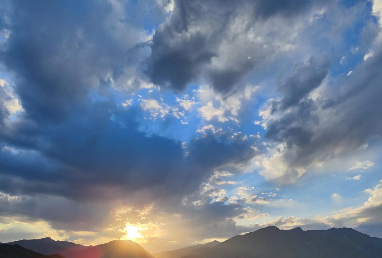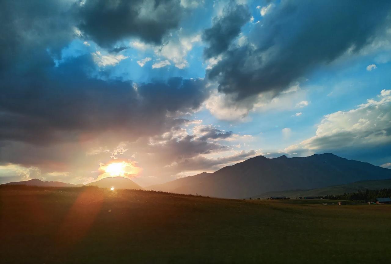 禾木的日落,不要太美啦! 玩儿了一天的喀纳斯景区,晚上七点多往住宿地禾木出发。一