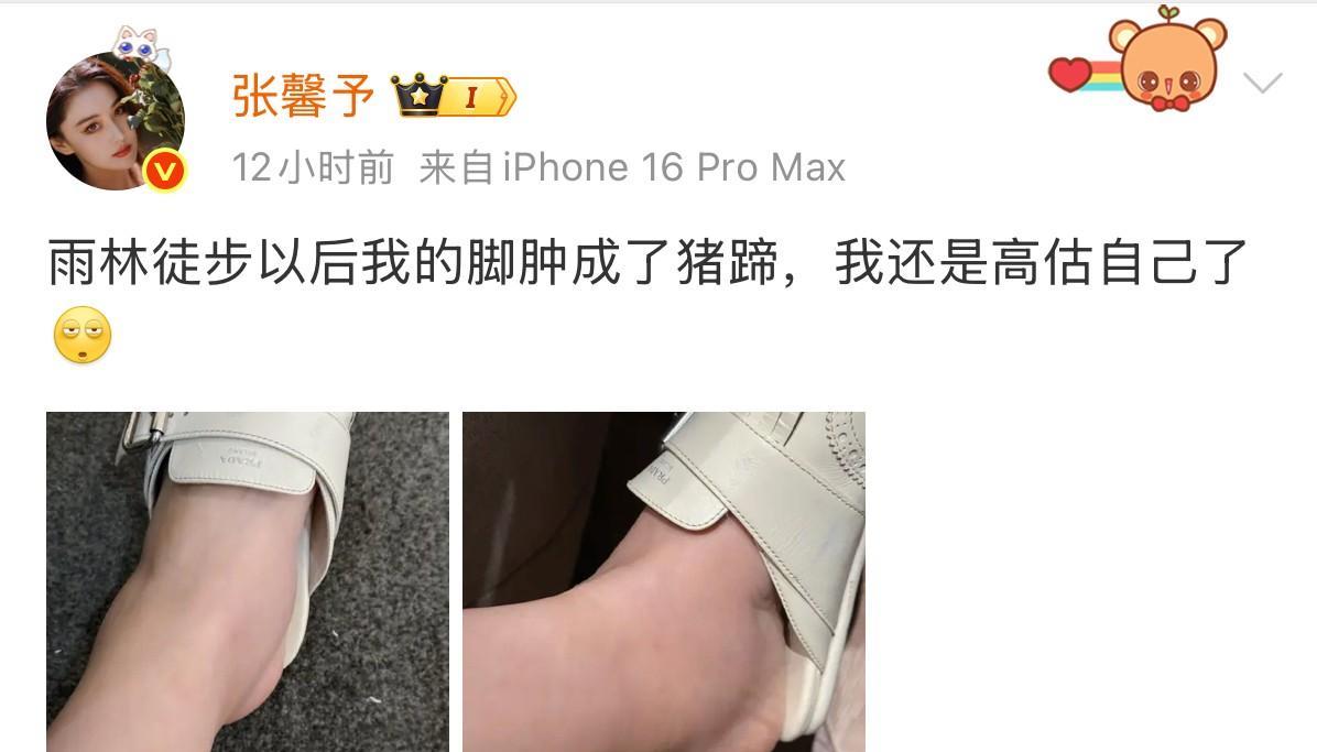 演员张馨予穿近万元鞋子徒步,也没能避免脚肿的可能!