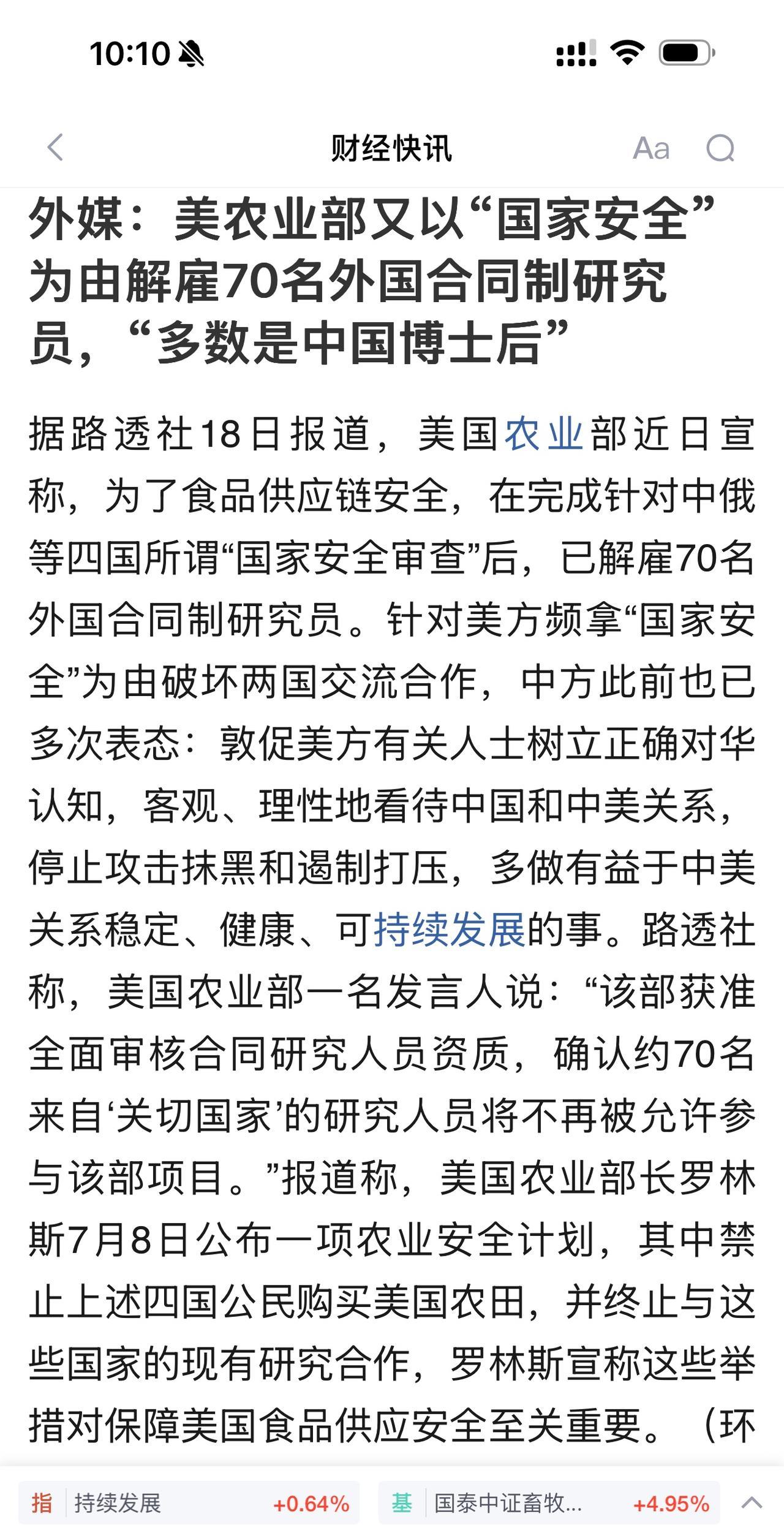 惊爆,惊爆!岂有此理?欲加之罪 何患无辞!70名中国博士后被美国解雇! 昨天就在X看到这个消息,担心被扣上“阴谋论”,就没有敢发!现在【环球】公开报道,坐实了!