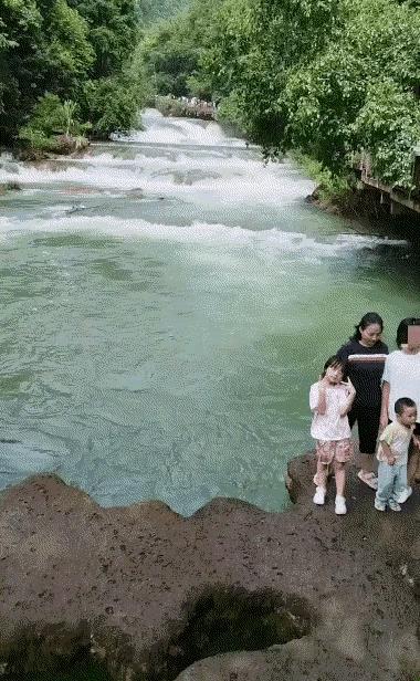 到这么危险的地方来拍照,当家长的有毛病,这是孩子被及时拉上来了,如果孩子被水流冲