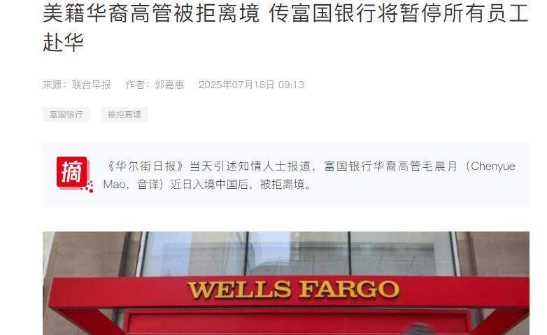 美西方敢扣押我们的人,我们也可以!7月17日,联合早报报道:富国银行美籍华裔高管