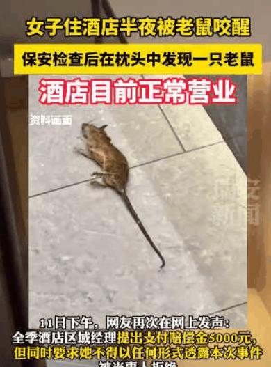 “太恶心了!“7月13日女子入住全季酒店,结果半夜被胳膊剧痛疼醒,开灯一看已经被咬出血,原来女子枕头里,一直藏着一只活老鼠!而酒店只肯给5000元封口费,要求女子不能把此事说出去!网友:天塌了,以前一直很信任全季的! 那天深夜,她睡得迷迷糊糊,突然间被一阵钻心的剧痛惊醒,整条右胳膊火辣辣地疼。 她迷迷糊糊地打开床头灯,眼前的一幕让她瞬间清醒——自己的手臂已经被咬出了血!鲜红的血迹顺着胳膊流下来,床单上一片触目惊心的红。 她当即惊恐地拨打前台电话,声音里满是颤抖:“你们赶紧派人来,我可能被什么东西咬了,出血了!” 酒店前台很快派来了一名保安,女子则惊魂未定地指着自己的枕头:“我觉得是爬到枕头里面去了!刚才我动了一下,就感觉那里面有东西在动!” 保安将信将疑地将她的枕头拎到走廊,解开枕套的一刹那,一只灰扑扑、体型中等的活老鼠竟然从枕头里“嗖”地一下窜了出来,吓得保安猛地退后两步,差点失手把枕头丢出去! 这一幕,女子看得头皮发麻,几乎崩溃:“我枕头里睡了一晚上竟然有只老鼠?!”她的声音里透着难以置信和极度恐惧。 原来,这只老鼠很可能早就藏身在枕头内,不知是在楼道间窜入,还是从床铺、被褥内钻进去的,总之就这样悄无声息地与女子共眠一整夜,甚至咬伤了她! 而更让人难以接受的是,事发后,酒店的处理态度极其冷漠。 最初,仅愿意免除该女子当晚的住房费用,但对于她伤口流血、惊吓过度、需紧急就医注射疫苗的实际医疗费用,却一直推诿敷衍,声称“这个不属于酒店责任范围”。 女子忍无可忍,情绪几近崩溃:“被老鼠咬了你们居然不当回事?万一感染病毒怎么办?得病谁负责?你们是连命都不管了?” 她再三要求酒店派人陪同就医,最终才在强烈要求下,一名酒店工作人员勉强同意陪她前往医院。 医院急诊科接诊后,医生明确表示:“被老鼠咬伤,必须立刻注射狂犬疫苗和破伤风针剂。” 医护人员还特别提醒,老鼠身上携带的病菌种类繁多,一旦感染流行性出血热、钩端螺旋体病、汉坦病毒,后果将不堪设想。 在医院匆忙接受完打针、处理伤口、留院观察等程序后,女子拖着虚弱的身体返回酒店,要求一个说法。然而,她面对的依旧是那种“事不关己”的敷衍态度。 “酒店方面压根没有一句道歉,只是反复强调已经退了房费。 后来干脆就说愿意赔偿我5000元,但是条件是:不许我对外讲这件事,也不能发在网上。”女子透露,自己当时听到这个所谓的“封口费”简直哭笑不得。 “我是被老鼠咬了,不是吃错饭、摔了一跤。你们酒店居然想拿5000块钱堵我的嘴?你们这是掩盖问题,不是解决问题!” 愤怒之下,女子将整件事情的经过在社交媒体平台上发布了出来,并配上自己打疫苗的手臂照片、医疗单据、酒店前台录音等证据,短短几个小时便引发了网友的广泛关注与舆论风暴。 “天塌了,全季酒店居然这么不靠谱?” “以前我一直信任全季,出差必住,现在真是不敢再去了。” “一个连卫生都保障不了的酒店,还有什么底线?” 在舆论发酵下,不少消费者翻出了自己过往在该酒店入住中遇到的问题,也有博主通过电话核实事件真实性,发现酒店方面确实承认出现了“老鼠事件”,但拒绝正面回应是否“封口”。 截至目前,该事件仍在持续发酵,而“全季酒店老鼠藏枕头咬人事件”也迅速登上热搜,引发全网关注。涉事酒店虽然删除了网络评论区的部分差评,但公众的不信任已经埋下了深深的阴影。