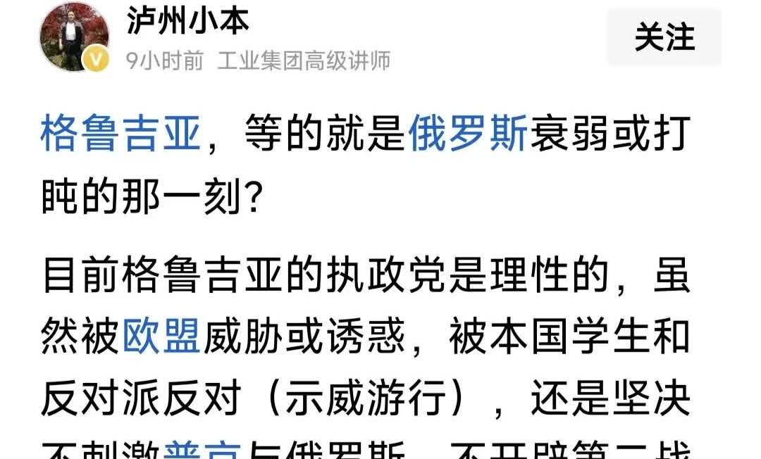 格鲁吉亚是一只装睡的狼!它比高加索的阿塞拜疆亚美尼亚,车臣鞑靼印古什等!看似温顺忍让,实则怨愤最深! 高加索位于苏俄西南后院,民风彪悍桀骜不驯!车臣阿塞拜疆格鲁吉亚,是该地区的刺头,给苏俄带来不少麻烦! 历史不多说,说近几十年。车臣反叛俄镇压,费了好大劲推翻杜达耶夫,扶持德卡罗夫成鹰犬,但又互相防备啊! 阿塞拜疆是苏联加盟国,苏解体独立。俄不承认,积怨已久。俄击落阿客机,抓捕“犯罪团伙”,阿对等予以反制! 但对俄怨恨最深是格鲁吉亚!几十年被苏俄分割出去三块领土:阿布哈兹,南奥赛梯与阿扎尔。目前阿扎尔经公投归格自治区,另两个地方已被俄吞并! 格鲁吉亚人怎能不怨愤?怎能无仇恨?但格政府知道国家小实力弱,无法与鹅熊抗衡,因此只能表现“委屈求全”! 但这是表面现象,格鲁吉亚没有忘记仇恨!格民众不断举行示威游行,抗议政府软弱无力,鼓噪收回“两块失地”! 他们怎知格政府难处?但格政府并非无所作为,比如暗中援乌资金武器,允许格民众组成志愿军,帮助乌军作战! 苍狼把格鲁吉亚,比作一只装睡的狼!它没有车臣的狂傲不羁,没有阿塞拜疆的针锋相对,但却是一只最狠的狼! 它对鹅怨恨程度,远在车臣与阿塞拜疆之上!它不露声色,是在等时机。一旦鹅熊衰弱,会猛扑上来咬住熊咽喉! 至于乌战如何发展?格鲁吉亚是否有复仇机会?要看天时地利人和!到那时高加索国家一齐行动,鹅熊如何应对? …………