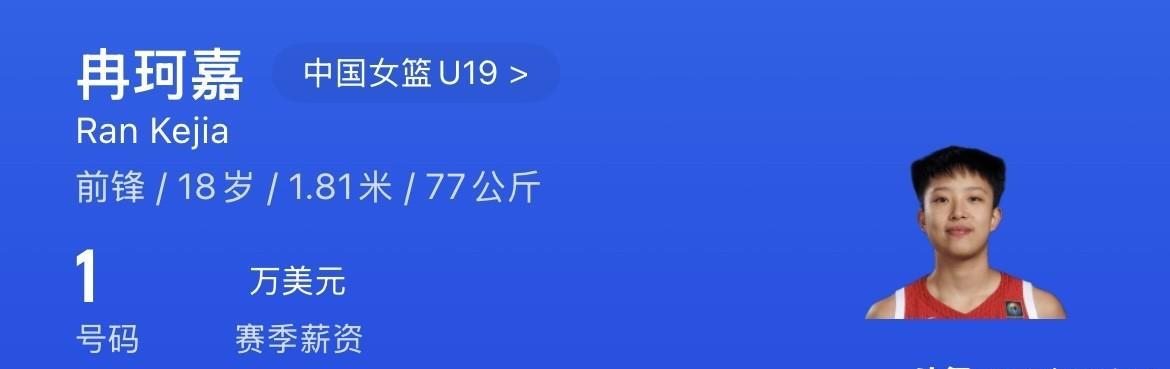 冉珂嘉将来应该是中国女篮的外线支柱,在没有张子宇的U19中国女篮,冉珂嘉是大腿,我查到的数据是1米81,场均能拿18.5分,11个篮板,打锋线位置。央视主持人却说只有1米75,打后卫。不知道哪个数据更准。昨天女篮亚洲杯半决赛输给日本,就是没有以前类似于邵婷和李梦那样可以攻坚的外线球员,冉珂嘉再成长成长,我觉得有潜力进国家队成为中国女篮的外线尖刀!