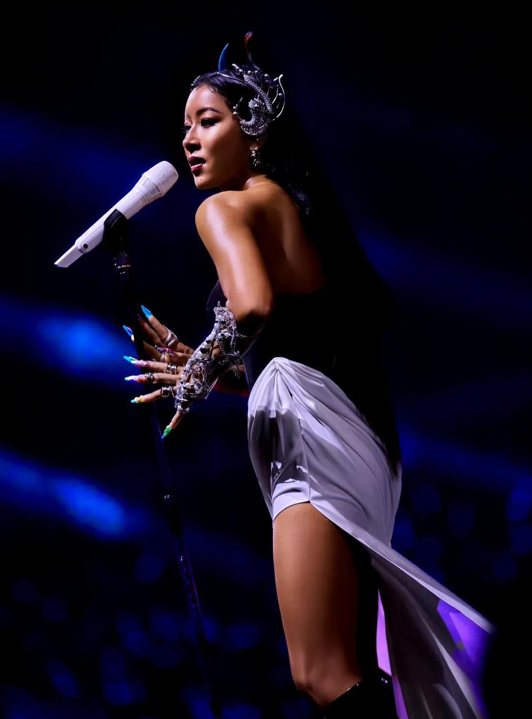 吉克隽逸真的好像一块巧克力呢! 与模特穿同款礼服, 居然更胜一筹! 所以,谁说黑皮穿衣服不好看? 如果你还是不理解她黑到什么程度 看她与刘亦菲同框就知道了, 一黑一白,不要太明显了。 貌似内娱应该找不到比她更黑的女明星了吧。 她这得天独厚的肤色, 真是天花板级别的独一份, 谁也模仿不来。