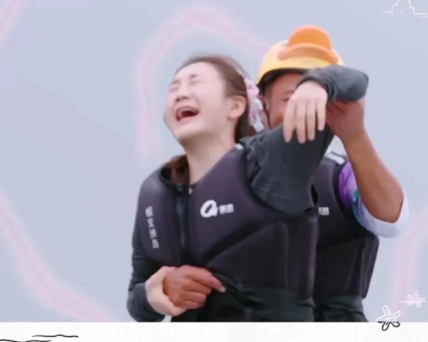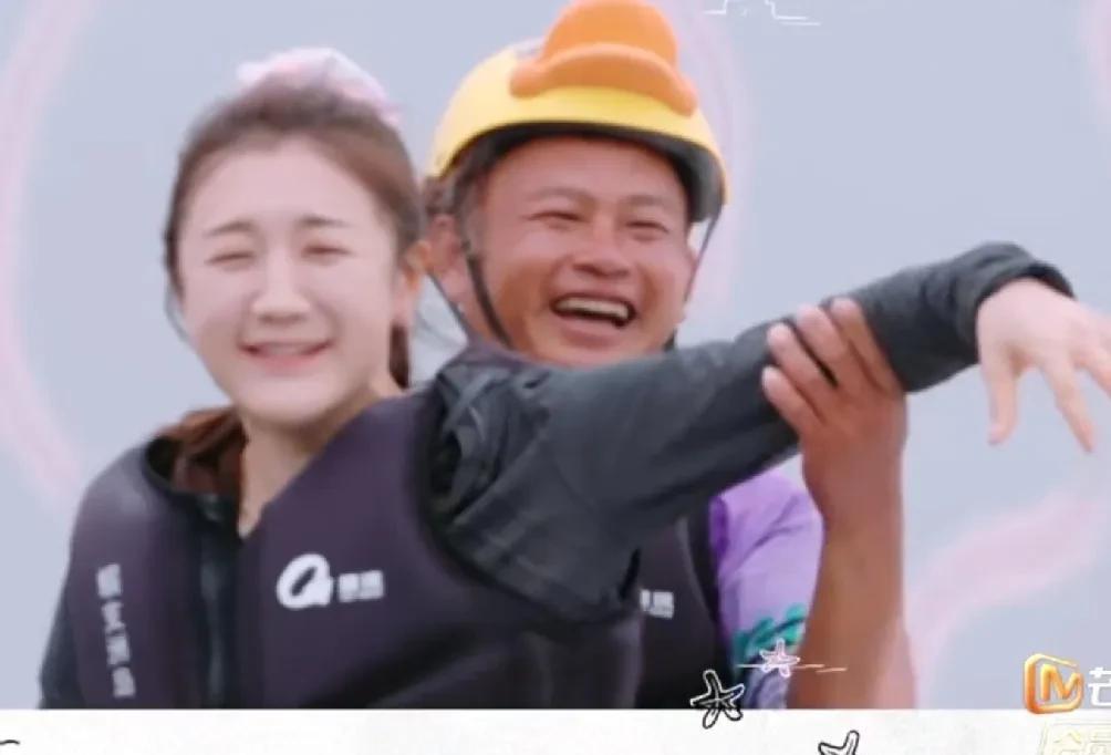 30岁的陈梦在玩水上飞龙时,被吓得一直尖叫,五官乱飞,74岁的黄圣依妈妈在玩水上