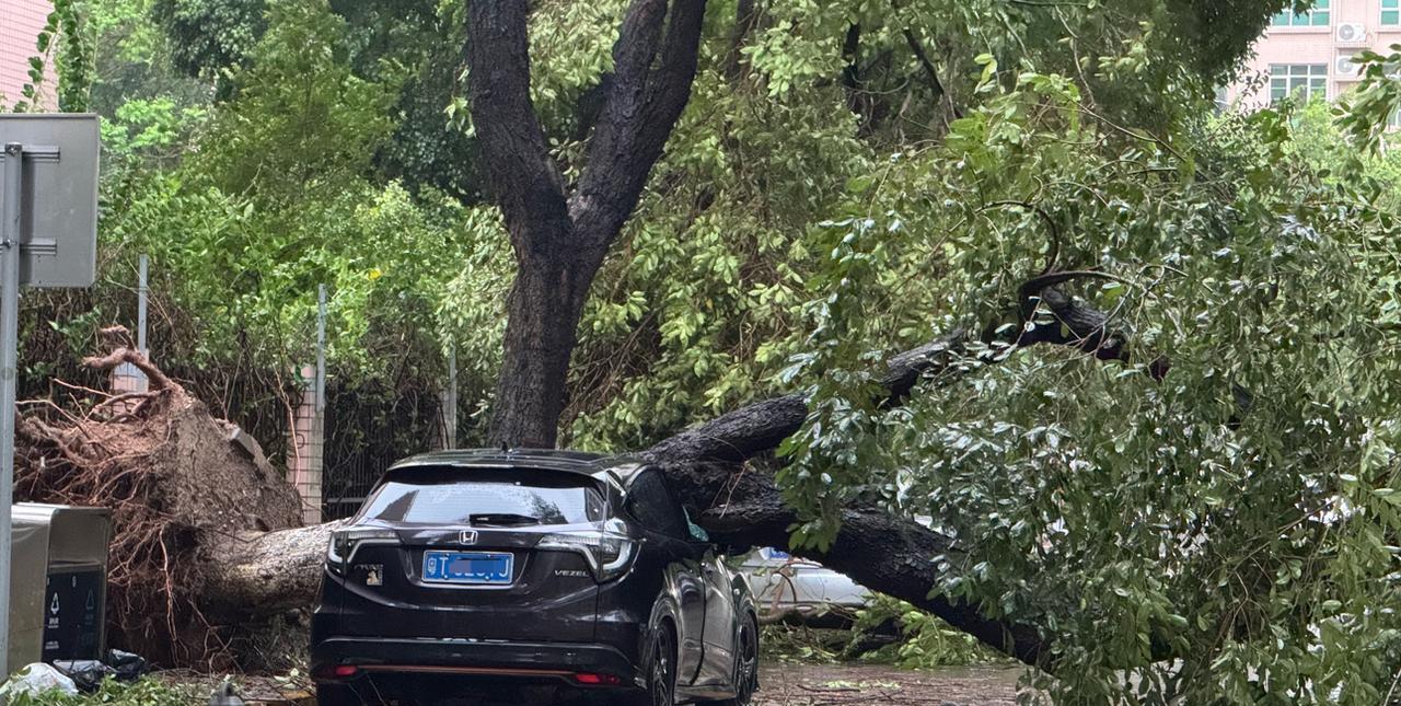 台风+暴雨施虐了一整天 中山城区几乎是倒树+水浸街 有不少泊车在路边的朋友,都被
