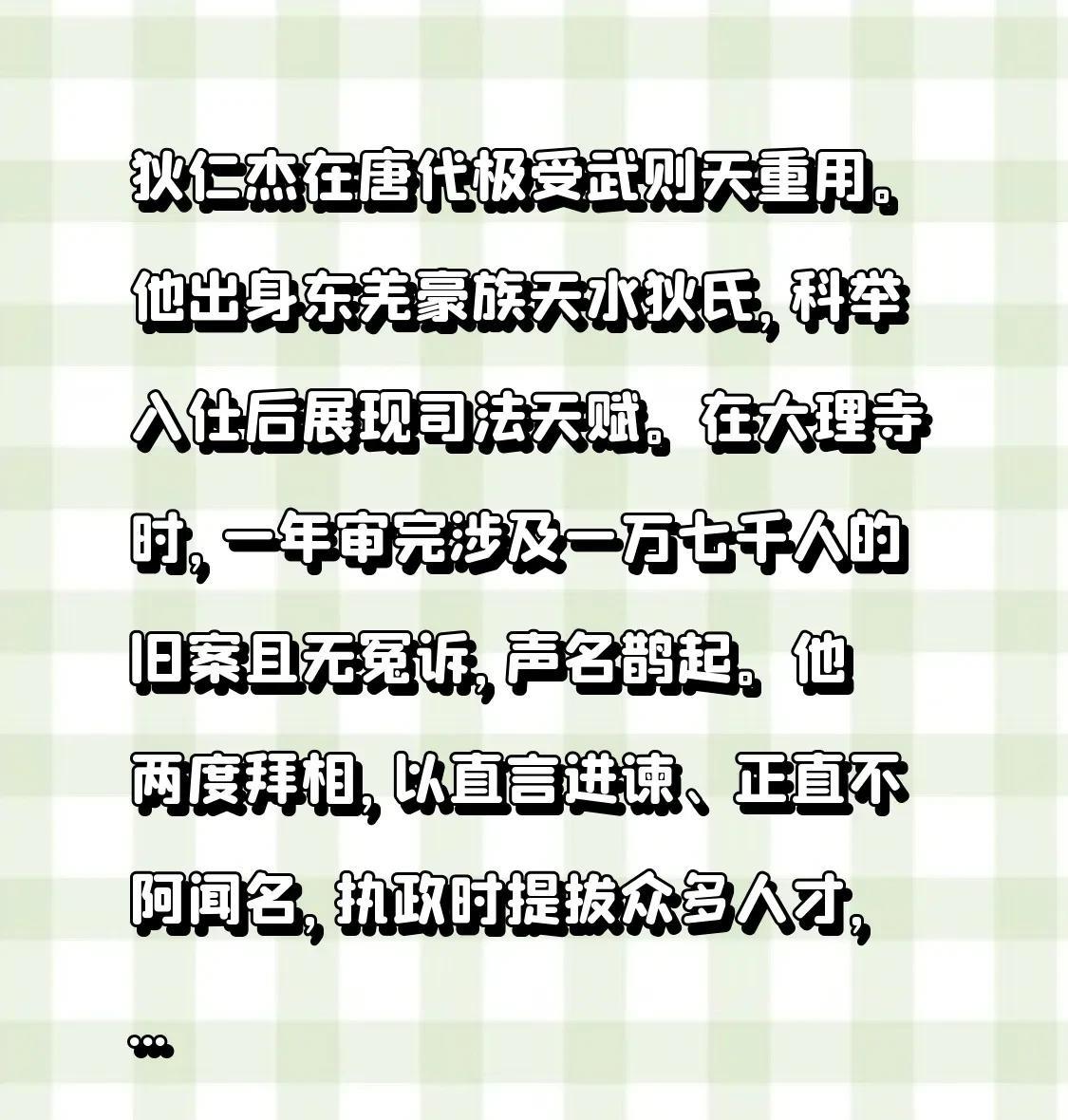 狄仁杰在唐代极受武则天重用。他出身东羌豪族天水狄氏,科举入仕后展现司法天赋。在大
